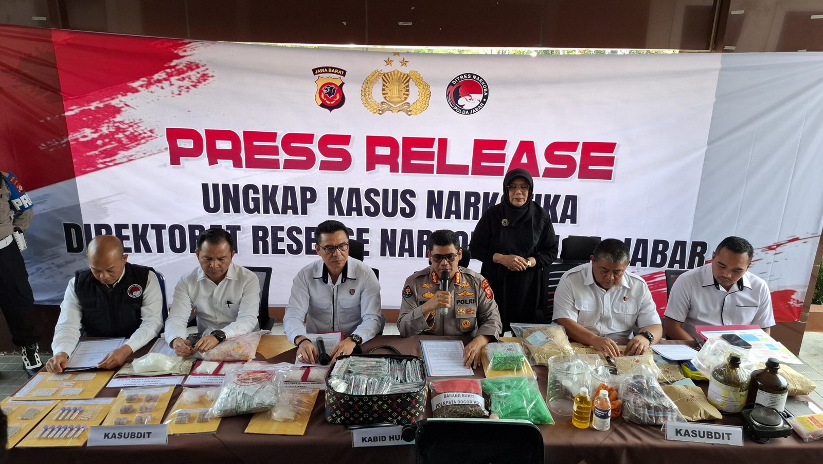 Dari tangan para tersangka, polisi menyita berbagai barang bukti, antara lain 10.946 gram sabu, 556 butir ekstasi, 14.132 gram ganja, 8.084 gram tembakau sintetis, 560 ml cairan tembakau sintetis, 6,2 gram bibit tembakau sintetis, 272.625 butir obat keras terbatas (OKT), serta 2.986 butir psikotropika.