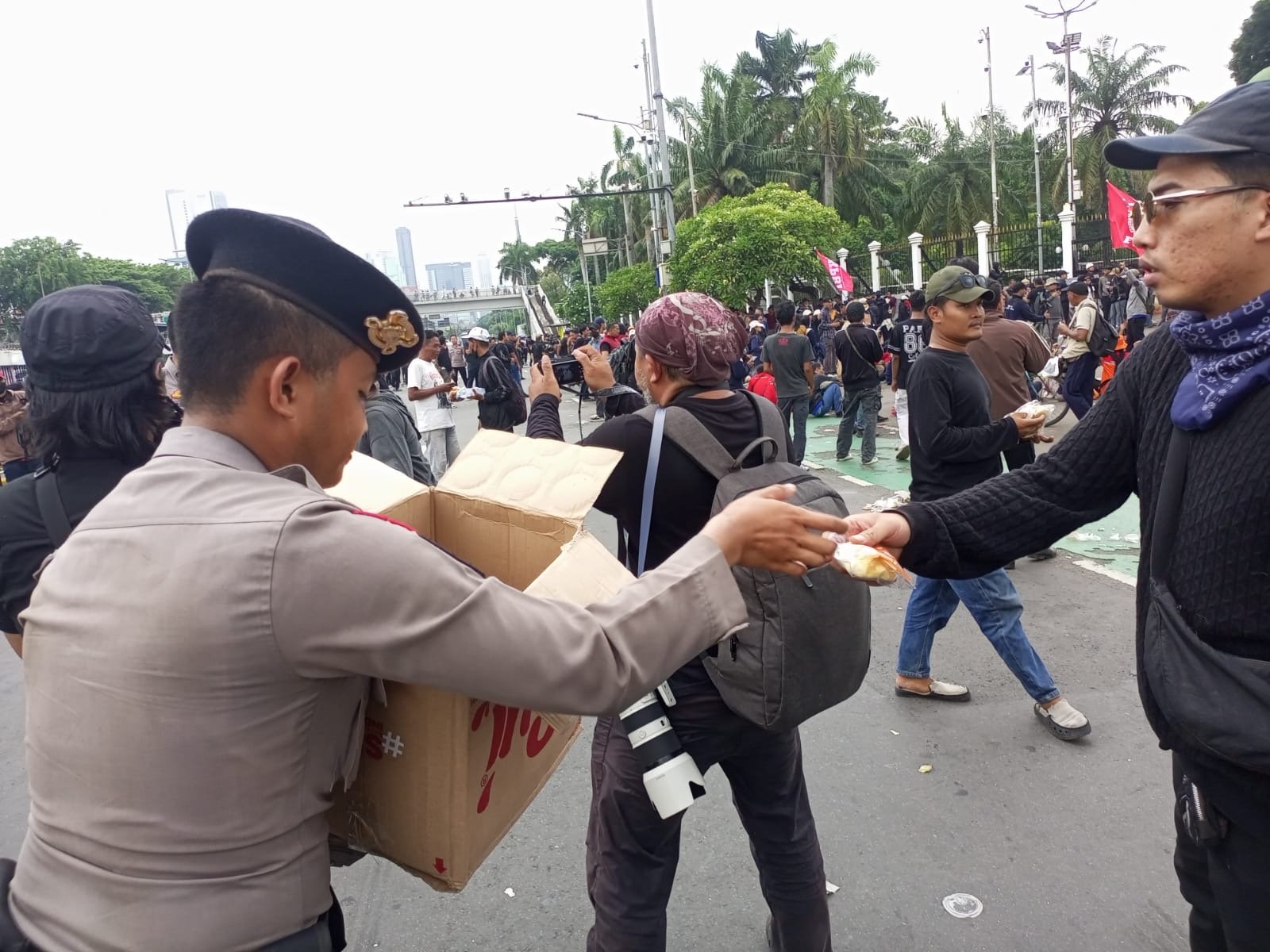 Pembagian air mineral dan roti ini menjadi bagian dari upaya Polri dalam memberikan pelayanan humanis kepada masyarakat yang sedang menyampaikan aspirasi.