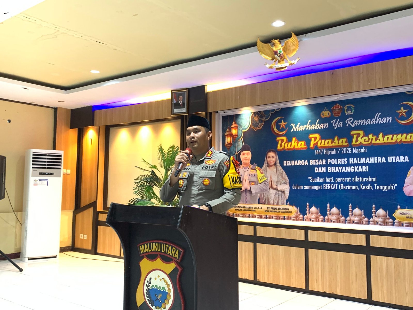 Kegiatan yang berlangsung di Ruang Aula Amarta Mapolres Halut tersebut menjadi ajang silaturahmi antara jajaran kepolisian dengan masyarakat, tema “Sucikan Hati, Pererat Silaturahmi dalam semangat BERKAT (Beriman, Kasih, Tangguh), Kapolres Halut, AKBP Erlichson Pasaribu, S.H. S.I.K., dalam sambutannya menyampaikan Saya sangat mengapresiasi semangat kebersamaan yang tercermin dalam acara ini. Forkopimda dan tamu undangan yang hadir bersama untuk menunjukkan bahwa perbedaan agama dan budaya justru menjadi kekuatan untuk membangun Kabupaten Halut yang damai, aman, dan sejahtera.