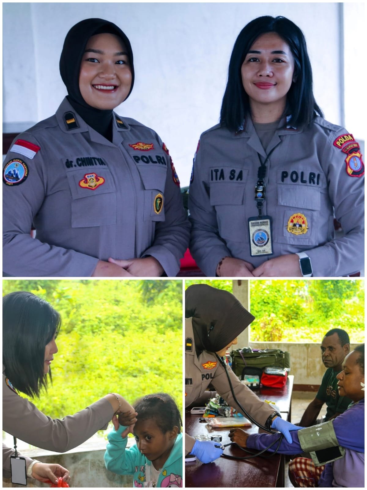 Di tengah kegiatan tersebut, IPDA dr. Chintya dan BRIPKA Ita terus melayani tanpa lelah. Senyum mereka menjadi pengingat bahwa pengabdian tidak selalu harus di garis depan medan konflik kadang-kadang, pengabdian paling berarti justru hadir lewat tangan yang menyentuh dan hati yang mendengarnya.