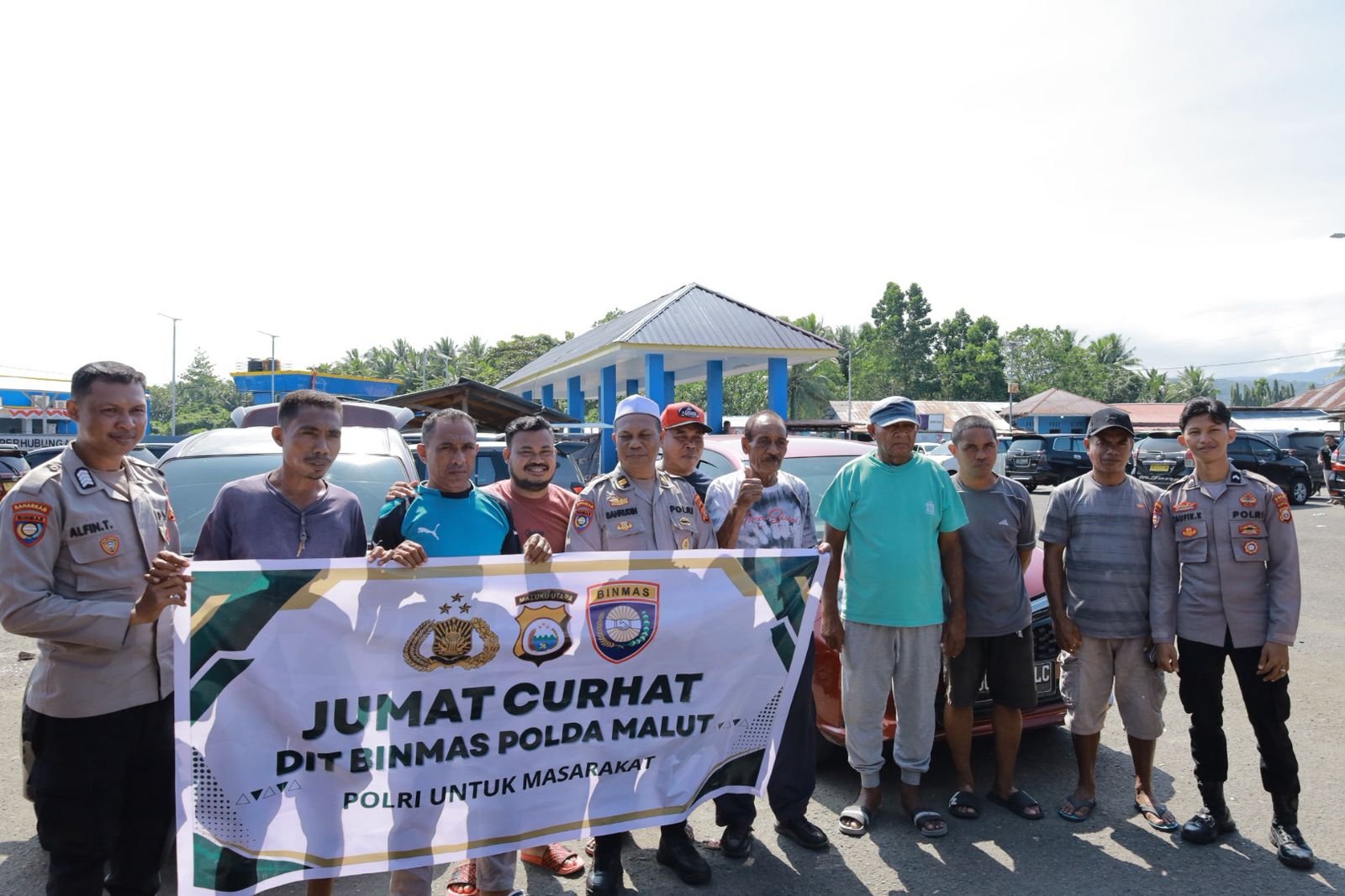 HUMAS POLDA MALUT – Direktorat Pembinaan Masyarakat (Binmas) Polda Maluku Utara menggelar kegiatan Jumat Curhat bersama sopir angkutan umum di Terminal Sofifi, Kelurahan Sofifi, Kecamatan Oba Utara, Kota Tidore Kepulauan, Jumat, (12/9/2025).