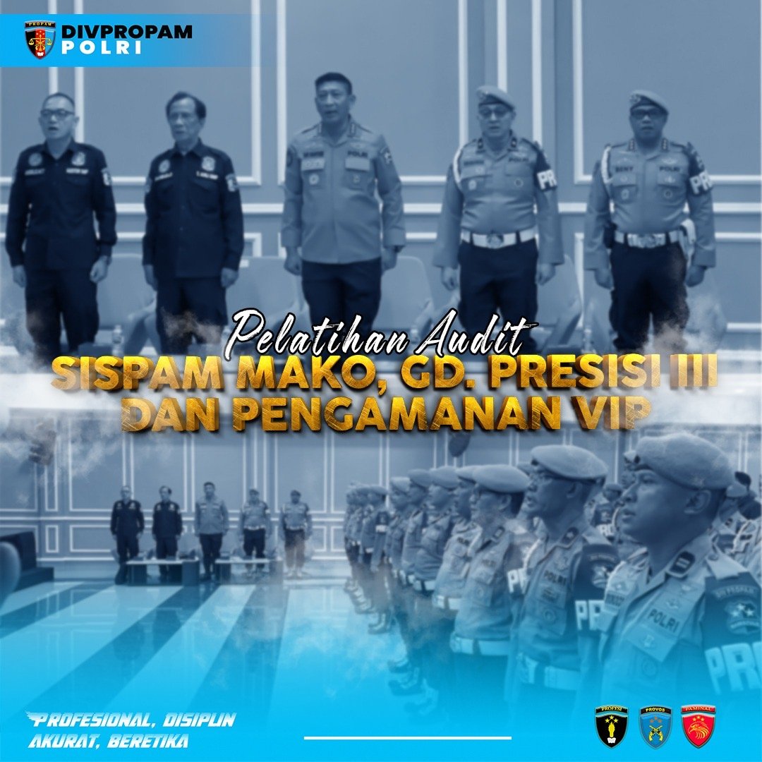 Jakarta – Divpropam Polri melaksanakan kegiatan Sistem Pengamanan Markas Komando (Sispam Mako), pengamanan VIP, serta audit pengamanan Gedung Presisi III, dengan menghadirkan sejumlah narasumber dari Baharkam Polri dan tenaga profesional pada Hari Rabu, 24 September 2025 di Lantai 10 Gd. Presisi III.