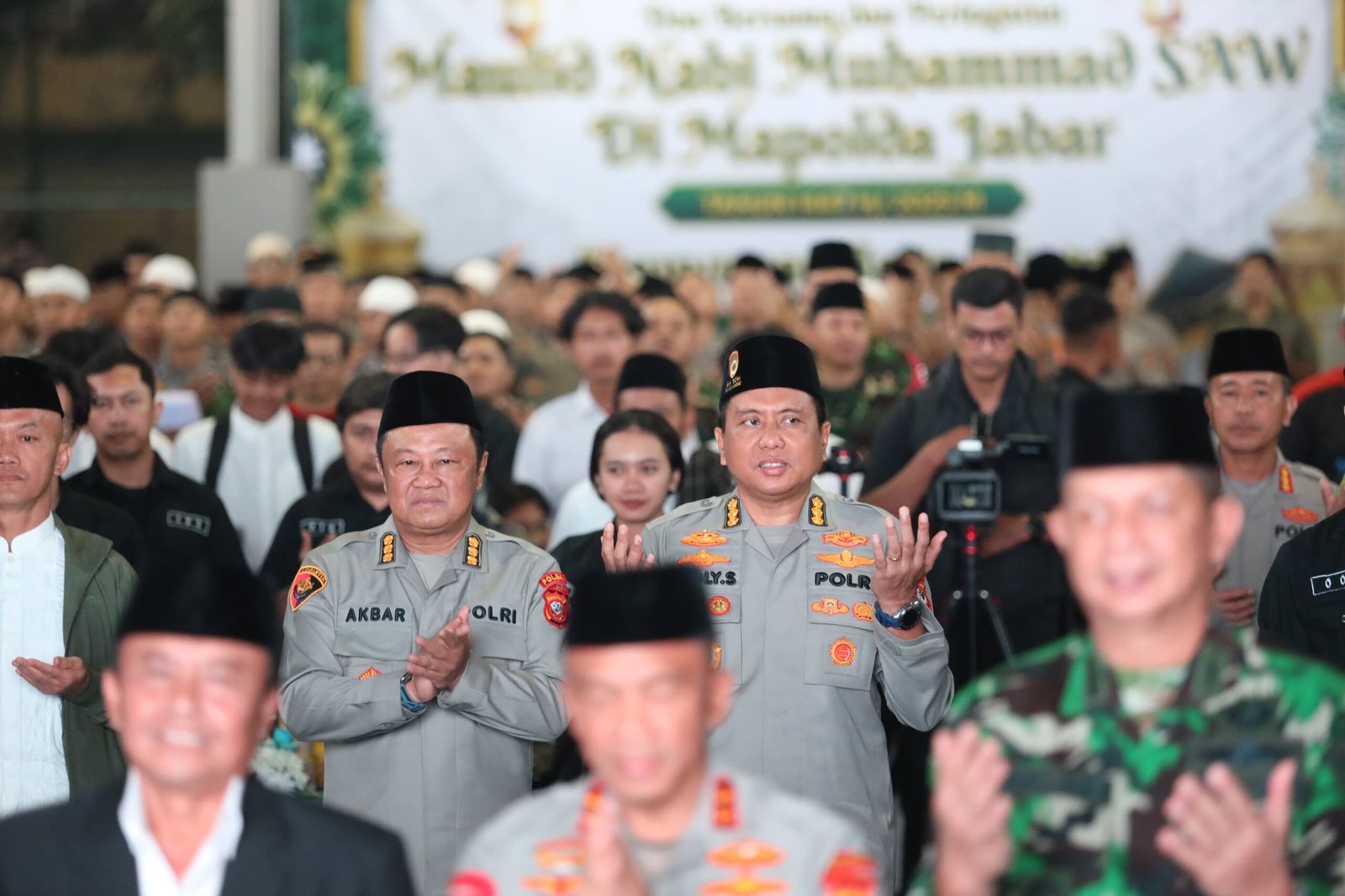 Bandung – Suasana khidmat menyelimuti Markas Polda Jawa Barat pada Minggu (7/9/2025) malam. Ratusan peserta dari unsur TNI, Polri, Forkopimda, tokoh agama, tokoh masyarakat, komunitas ojek online, hingga elemen masyarakat lainnya berkumpul dalam doa bersama memperingati Maulid Nabi Muhammad SAW 1447 H.