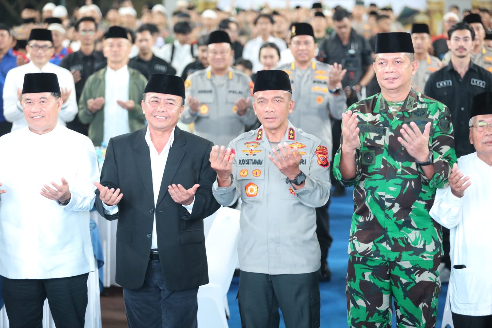 Bandung – Suasana khidmat menyelimuti Markas Polda Jawa Barat pada Minggu (7/9/2025) malam. Ratusan peserta dari unsur TNI, Polri, Forkopimda, tokoh agama, tokoh masyarakat, komunitas ojek online, hingga elemen masyarakat lainnya berkumpul dalam doa bersama memperingati Maulid Nabi Muhammad SAW 1447 H.