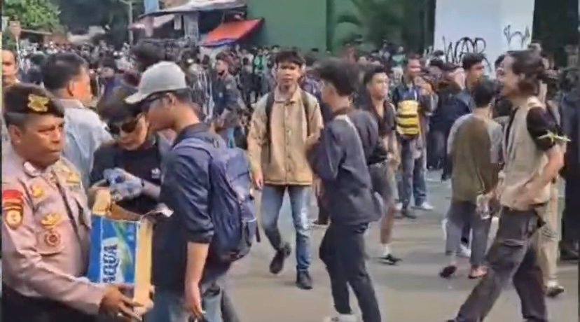 Jakarta. Sebanyak 1.250 Personel Kepolisian diterjunkan untuk mengamankan aksi Unjak Rasa di Gedung MPR/DPR RI. Dalam pengamanan ini seluruh personel ditekankan untuk berlaku humanis kepada massa aksi. Salah satu bentuk aksi humanis yang dilakukan oleh Petugas Kepolisian dengan membagikan air minum sebagai bentuk kepedulian terhadap massa aksi yang tengah menyampaikan pendapat di Jalan Gerbang Pemuda pada Senin sore(25/08/2025)