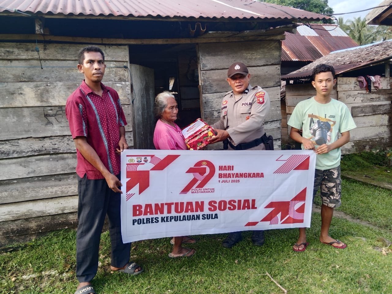 Humas Polres Sula – Dalam rangka memperingati Hari Ulang Tahun (HUT) Bhayangkara ke-79, Polsek Mangoli Barat melaksanakan kegiatan Bakti Sosial berupa pembagian paket sembako kepada masyarakat yang membutuhkan.