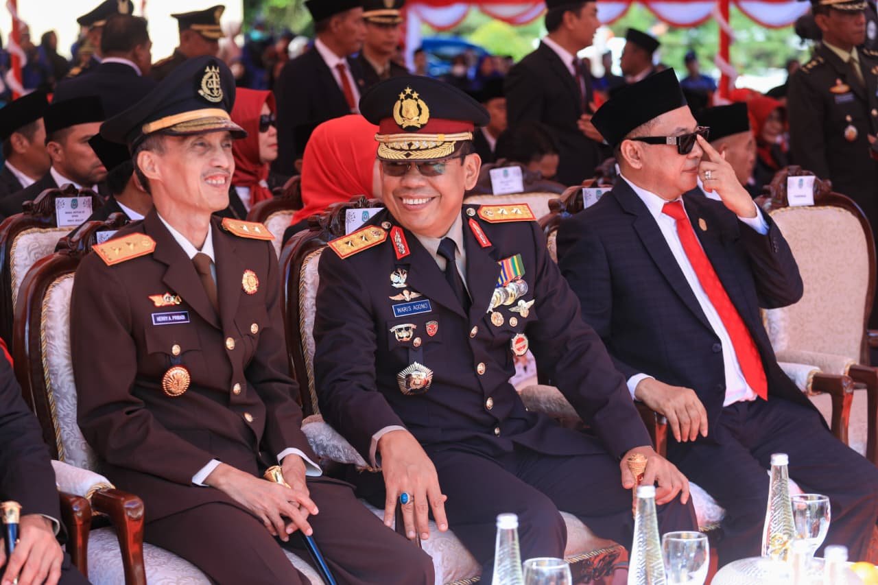 Sofifi, Minggu, 17 Agustus 2025 – Kepala Kepolisian Daerah Maluku Utara, Irjen Pol. Drs. Waris Agono, M.Si, menghadiri Upacara Pengibaran Bendera dalam rangka Peringatan Detik-Detik Proklamasi Hari Ulang Tahun (HUT) ke-80 Kemerdekaan Republik Indonesia, yang digelar di halaman Kantor Gubernur Provinsi Maluku Utara, Sofifi.