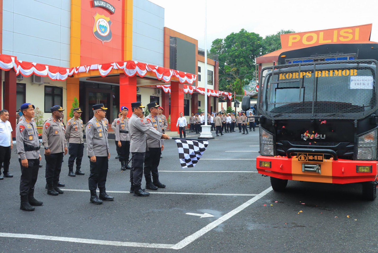 Acara pelepasan ditandai dengan penyiraman air kembang, pemecahan kendi, dan penyematan bendera start sebagai simbol resmi dimulainya pergeseran. Prosesi ini turut dihadiri Wakapolda Maluku Utara Brigjen Pol. Stephen M. Napiun, S.I.K., S.H., M.Hum., beserta seluruh Pejabat Utama Polda.