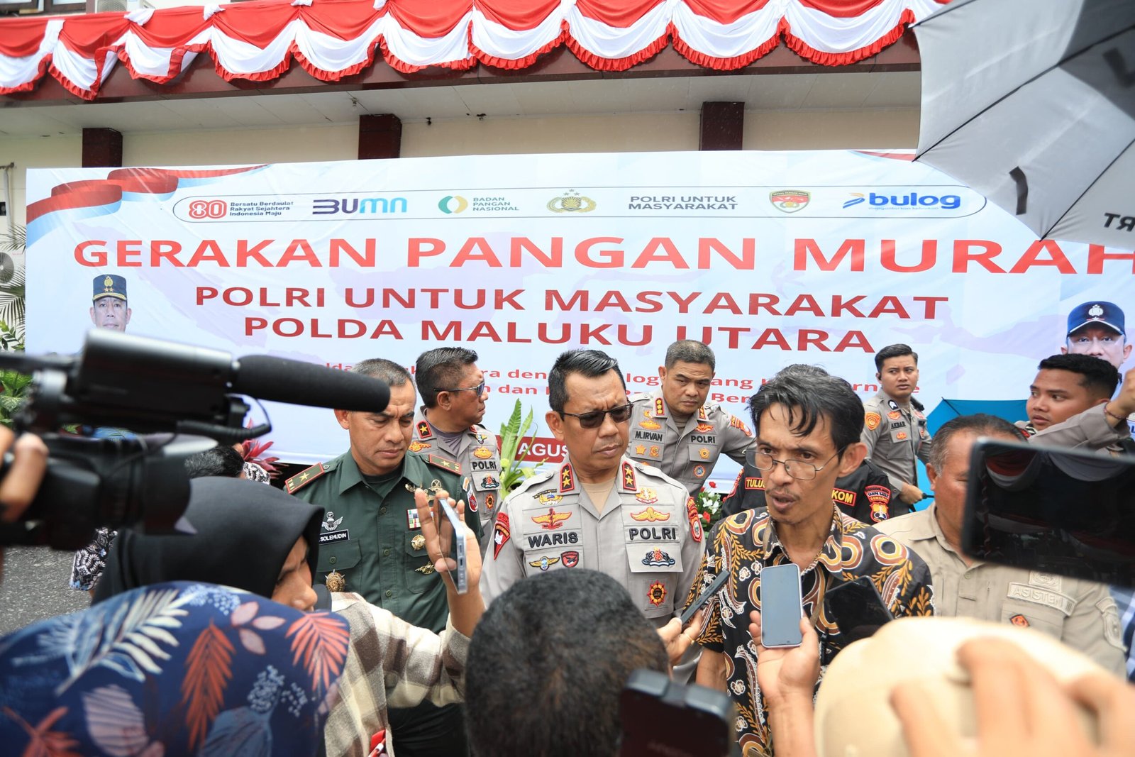 Humas Polri — Kepala Kepolisian Daerah Maluku Utara, Irjen Pol. Drs. Waris Agono, M.Si., bersama Wakil Kepala Kepolisian Daerah Maluku Utara, Brigjen Pol. Stephen M. Napiun, S.I.K., S.H., M.Hum., menghadiri Kick Off Launching Gerakan Pangan Murah Serentak secara daring (online) melalui sarana zoom meeting, Kamis (14/8)