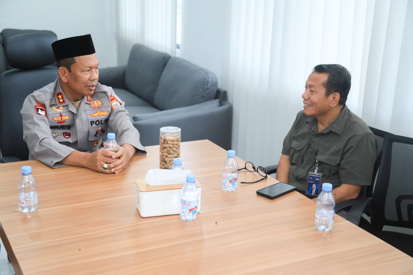 HUMAS POLDA MALUT – Kapolda Maluku Utara Irjen Pol. Drs. Waris Agono, M.Si. menerima silaturahmi dari Pimpinan Wilayah Perum Bulog Maluku dan Maluku Utara, Rudi Sunawair Tahir, di ruang kerja Direktur Lalu Lintas Polda Malut, Rabu, (24/9/2025).