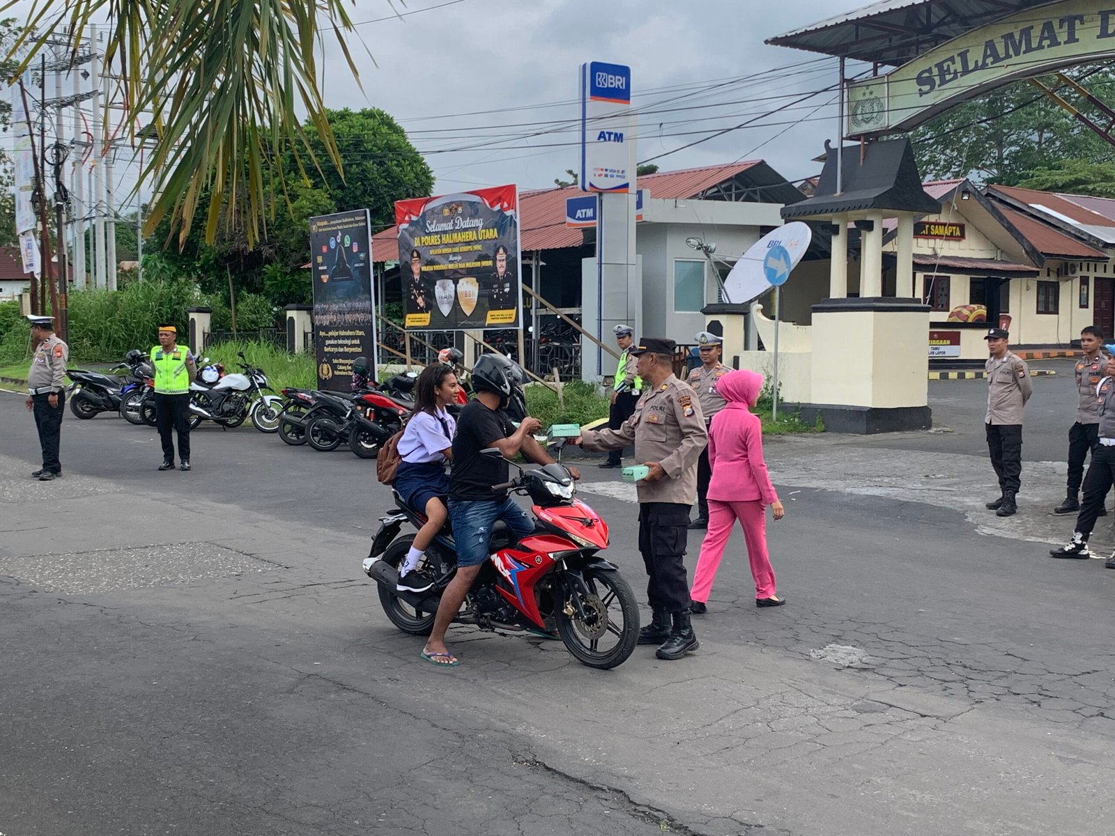 HUMAS POLRES HALUT – Kepolisian Resor Halmahera Utara Kapolres Halut AKBP Erlichson Pasaribu S.H. S.I.K Bersama Personil Satuan Lalu Lintas (Satlantas) Dan Bagian Perencanaan (Bagren) Serta Bhayangkari Cabang Halut membagikan takjil kepada para pengendara pada Senin, (23/2/2026). Kegiatan berlangsung di Depan Polres halut Jalan Ir. Hein Namotemo, Kecamatan Tobelo Kabupaten Halmahera Utara.
