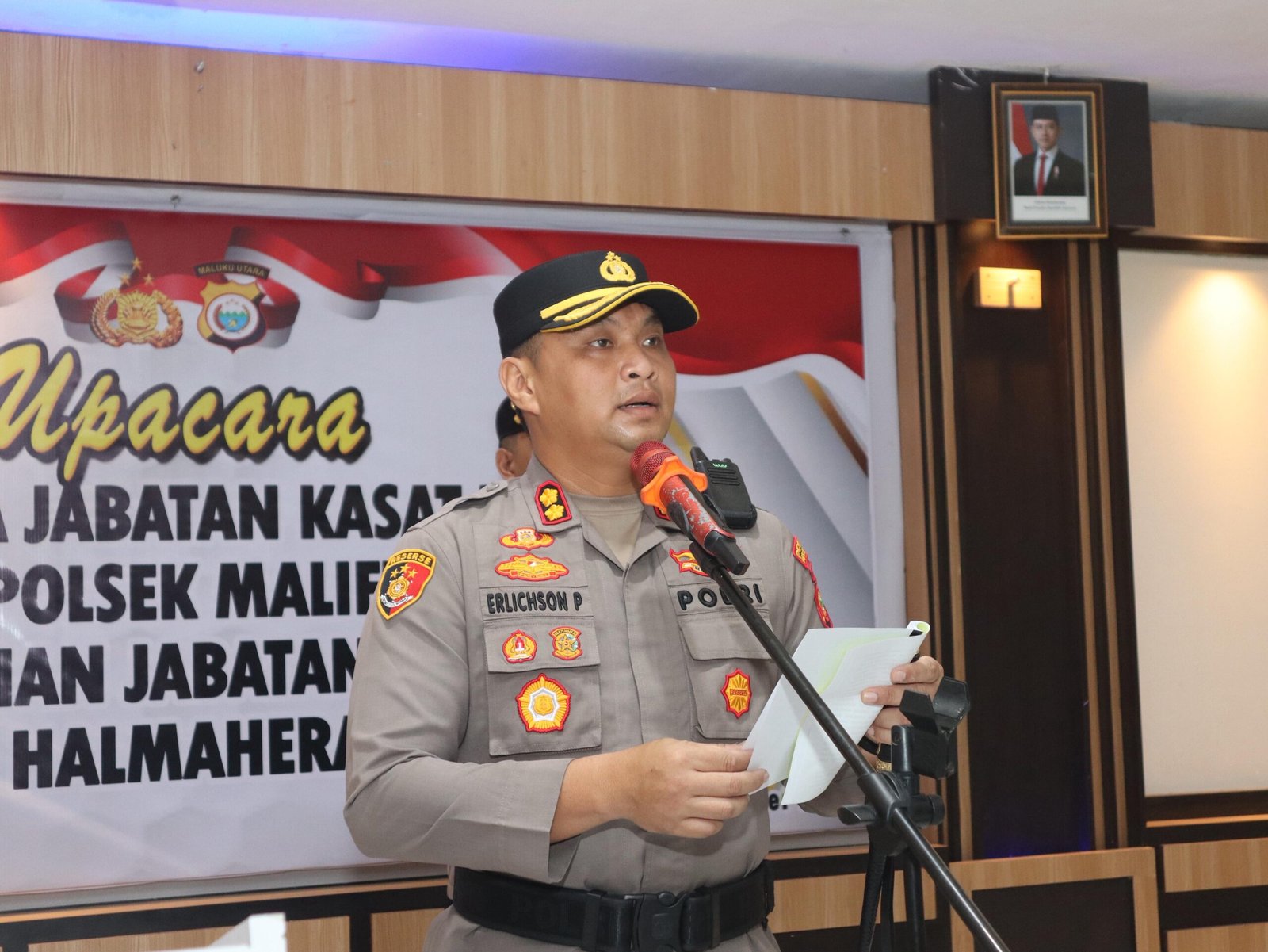 HUMAS POLRES HALUT – Kepolisian Resor Halmahera Utara, Maluku Utara menggelar serah terima jabatan, (Sertijab) dan penyerahan jabatan Kasi Propam yang dipimpin langsung oleh Kapolres Halmahera Utara AKBP Erlichson Pasaribu, S.H, S.I.K. (20/11/25).