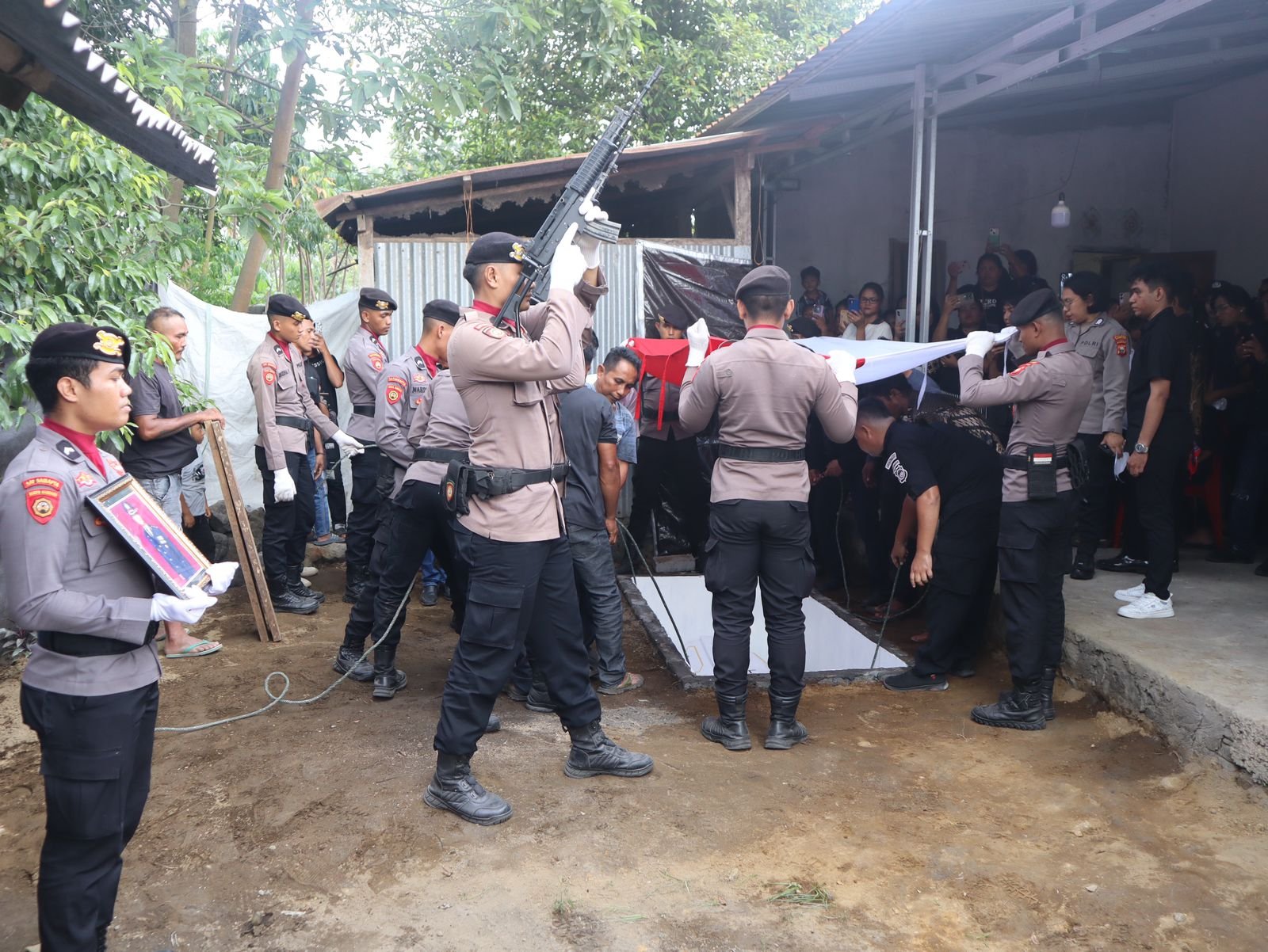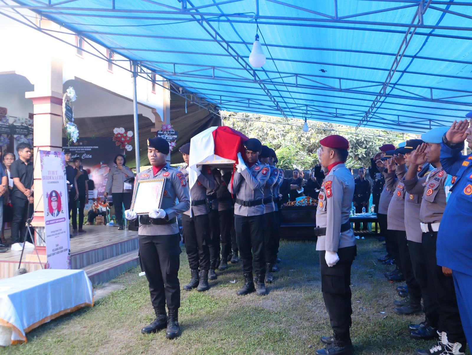 Akhir kata, marilah kita semua berdoa mohon kepada Tuhan Yang Maha Kuasa agar mengampuni segala kesalahan dan kehilafan almarhum dan semoga mendapat tempat yang layak di sisi Tuhan Yang Maha Esa, dengan sebaik-baiknya. Ucap Kapolres berakhir,”