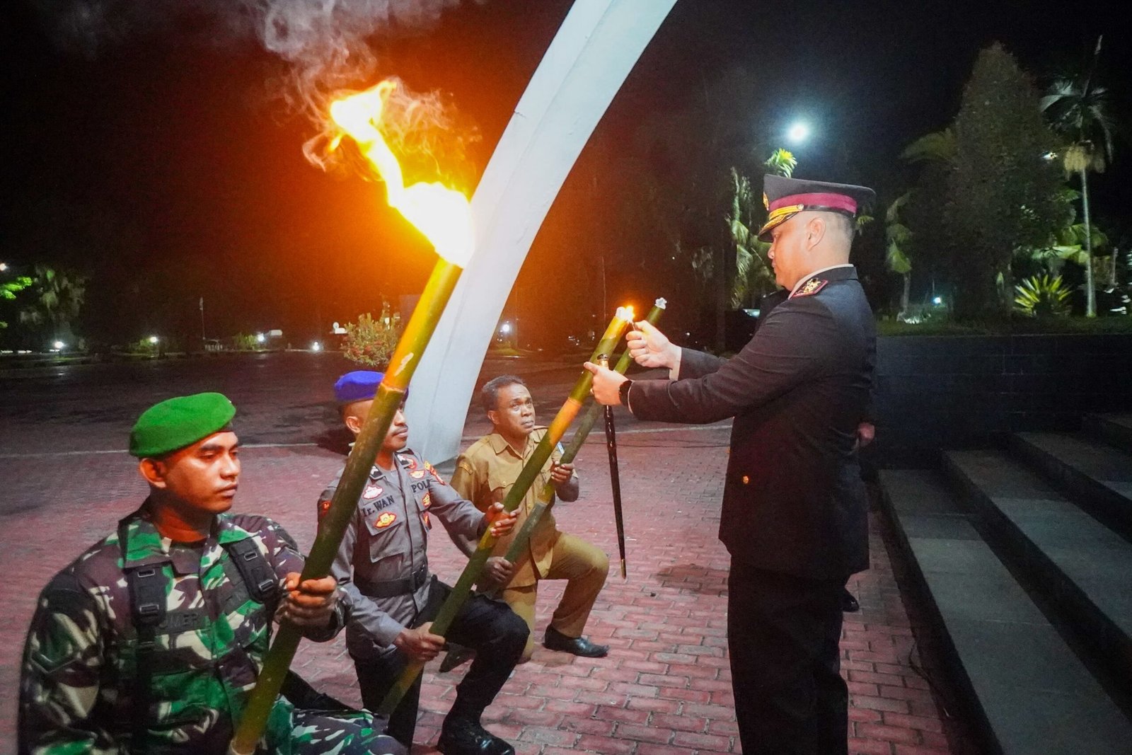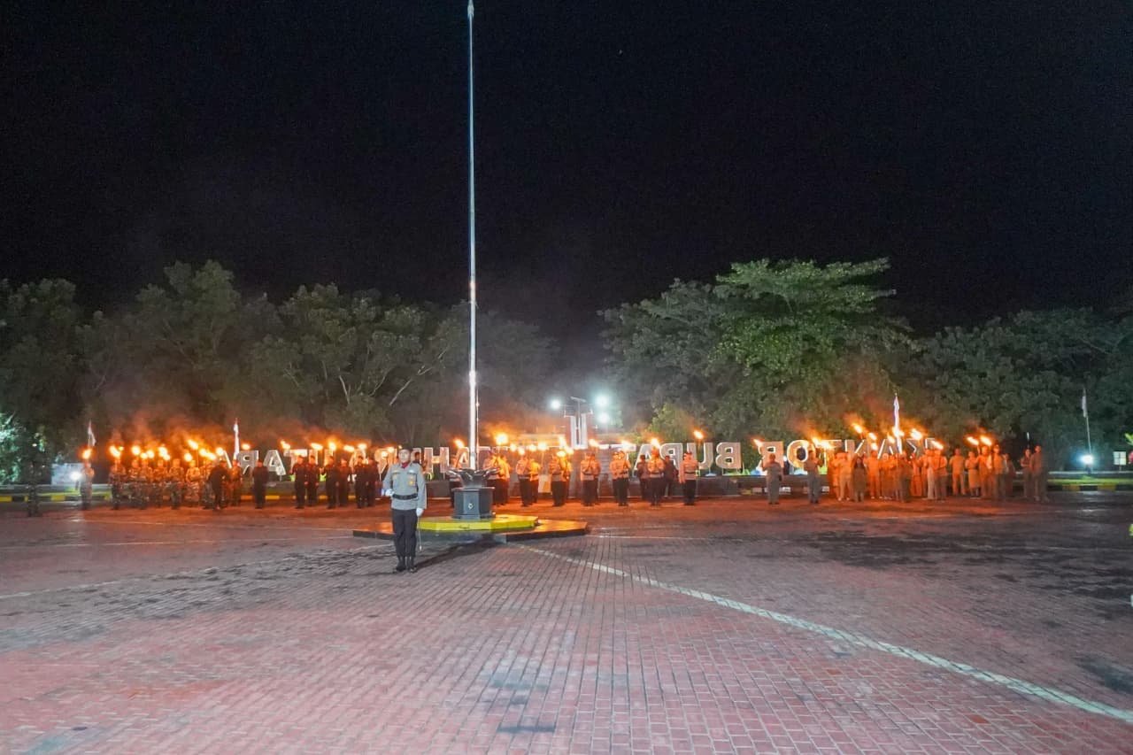 Upacara Taptu yang berjalan penuh khidmat tersebut dilanjutkan dengan pawai obor yang diikuti oleh ratusan peserta yang berasal dari unsur TNI dan Polri, Satpol PP dan unsur ASN