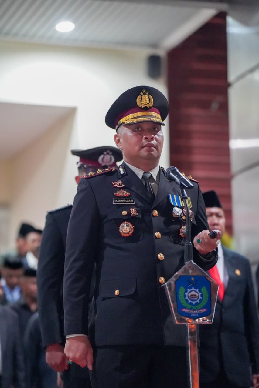 Humas Polres Halut – Dalam rangka memperingati hari Ulang Tahun ke-80 Kemerdekaan Republik Indonesia di Kabupaten halmahera utara, diawali dengan Upacara Penetapan Waktu (Taptu), bertindak sebagai Inspektur Upacara KAPOLRES HALMAHERA UTARA AKBP ERLICKSON PASSARIBU S.H. S.I.K. pada hari Saptu tanggal 16-8-2025