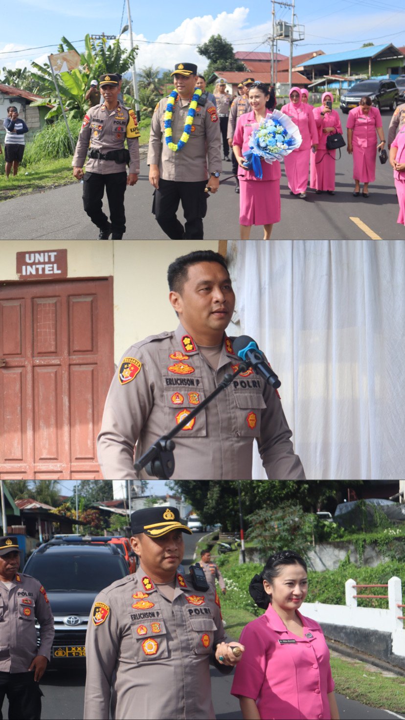 Humas Polres Halut – Kepala Kepolisian Resort Halmahera Utara AKBP Erlichson Pasaribu, S H.,S.I.K bersama Ketua Bhayangkari Cabang Halmahera Utara Ny. Friska Erlichson. Melaksanakan kunjungan kerja Ke Polsek Galela, Dalam kunjungan tersebut Kapolres Halut didampingi sejumlah pejabat utama Polres Halut, Jum’at (19/09/2025).