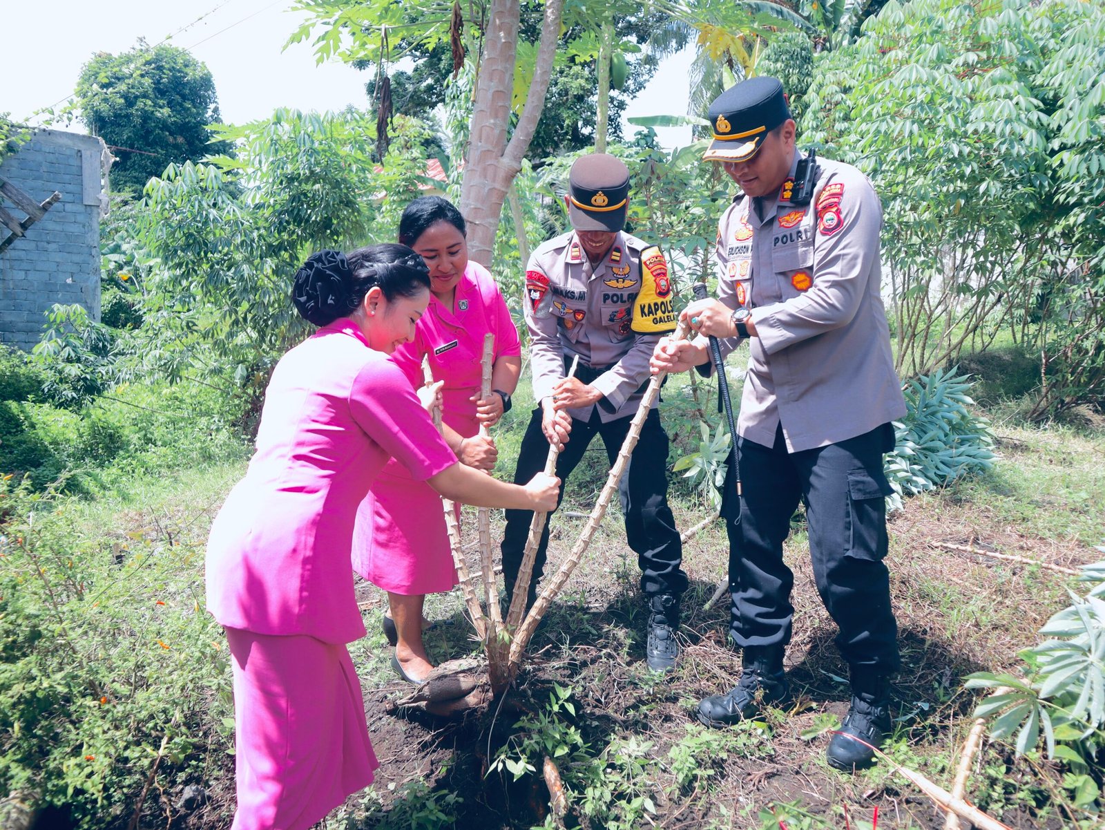 Kapolres Halmahera Utara AKBP Erlichson Pasaribu, S H.,S.I.K bersama Ketua Bhayangkari Cabang Halmahera Utara Ny. Friska Erlichson di dampingi para PJU melaksanakan giat Gerakan Pangan Murah, dengan melakukan pembagian Beras sebanyak 100 Sak berukuran 5 Kg kepada warga masyarakat di Lanjutkan melaksanakan Survei Lahan Pekarangan Pangan Lestari (P2L) Polsek Galela.