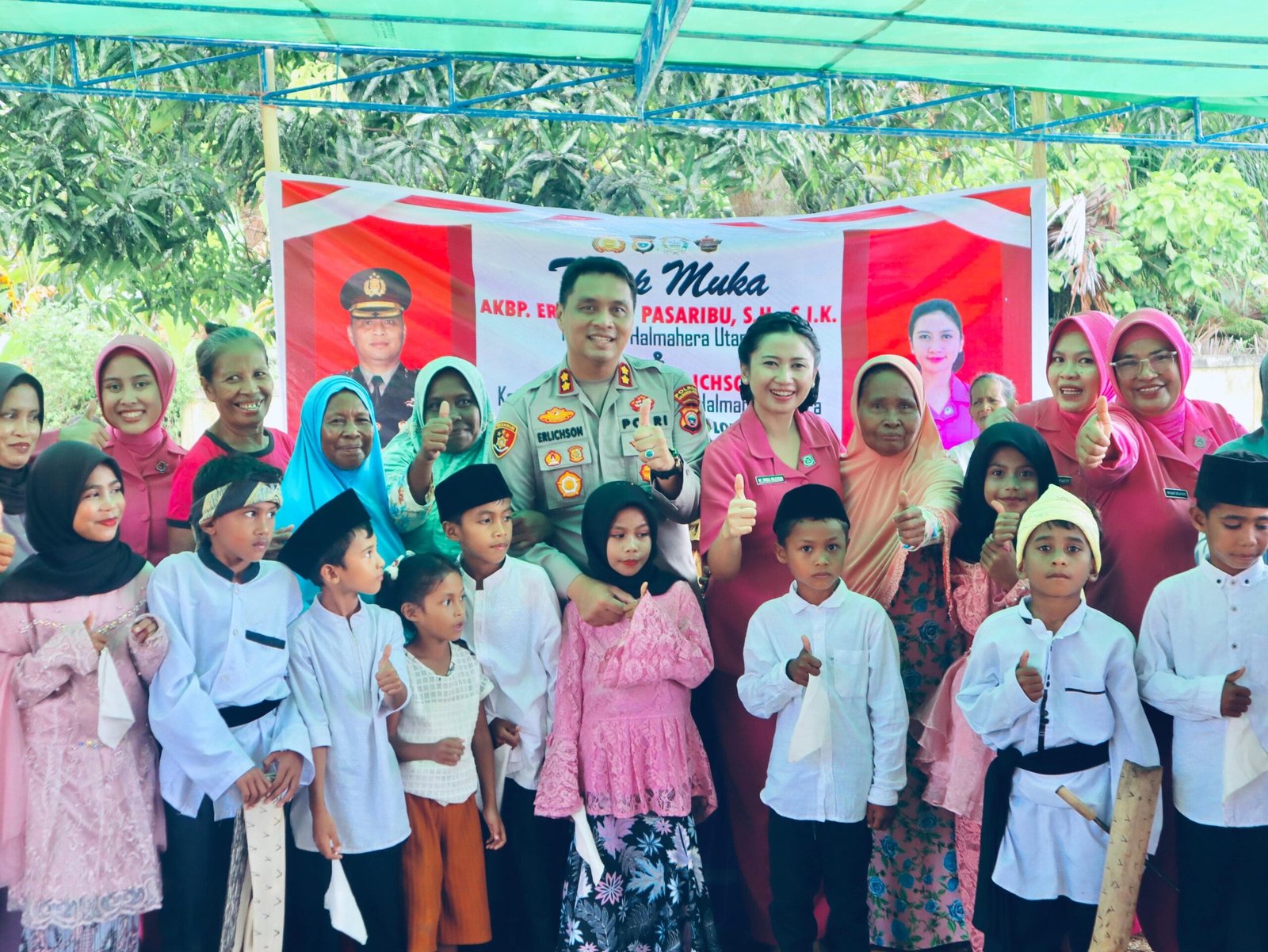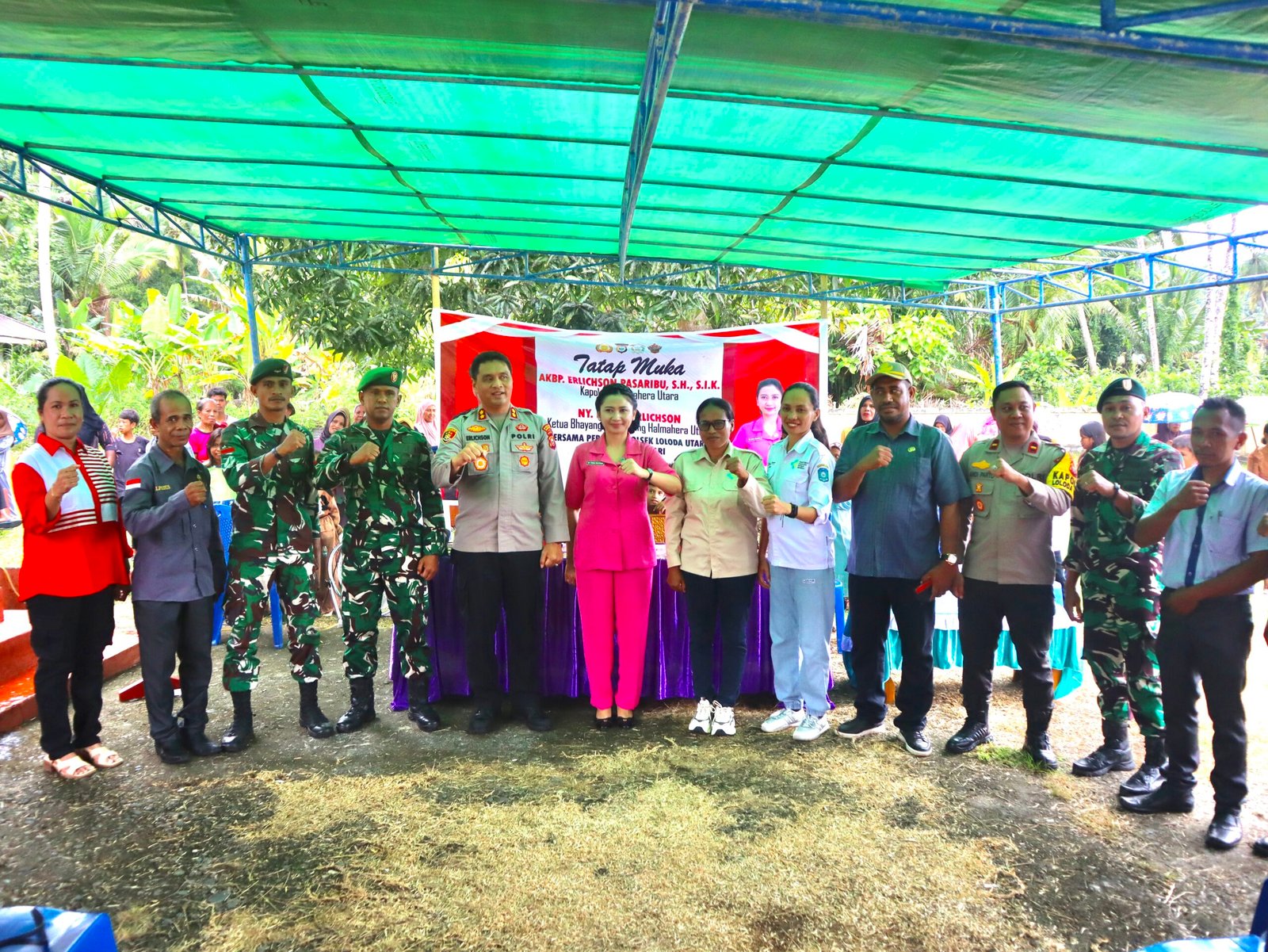 Humas Polres Halut – Kepala Kepolisian Resort Halmahera Utara AKBP Erlichson Pasaribu, S H.,S.I.K bersama Ketua Bhayangkari Cabang Halmahera Utara Ny. Friska Erlichson. Melaksanakan kunjungan kerja Ke Polsek Loloda Utara, Dalam kunjungan tersebut Kapolres Halut didampingi sejumlah pejabat utama Polres Halut, Saptu (20/09/2025).