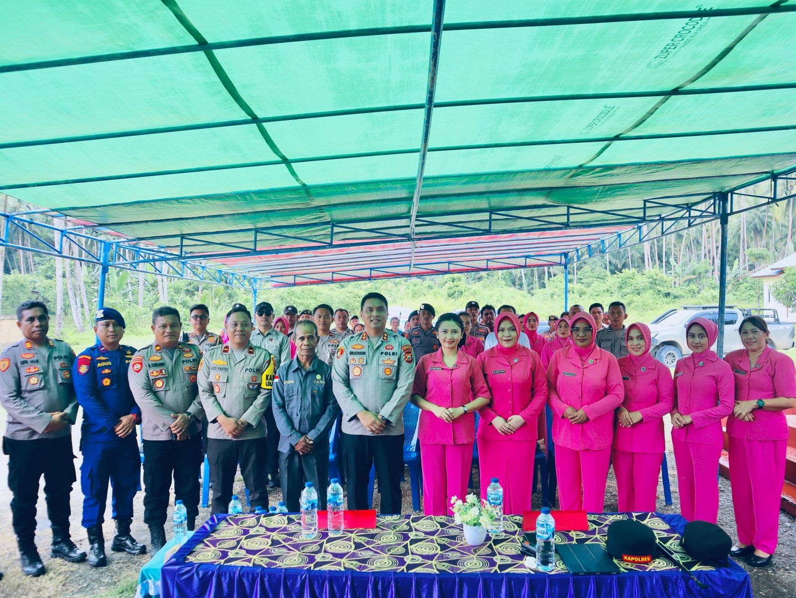 Humas Polres Halut – Kepala Kepolisian Resort Halmahera Utara AKBP Erlichson Pasaribu, S H.,S.I.K bersama Ketua Bhayangkari Cabang Halmahera Utara Ny. Friska Erlichson. Melaksanakan kunjungan kerja Ke Polsek Loloda Utara, Dalam kunjungan tersebut Kapolres Halut didampingi sejumlah pejabat utama Polres Halut, Saptu (20/09/2025).