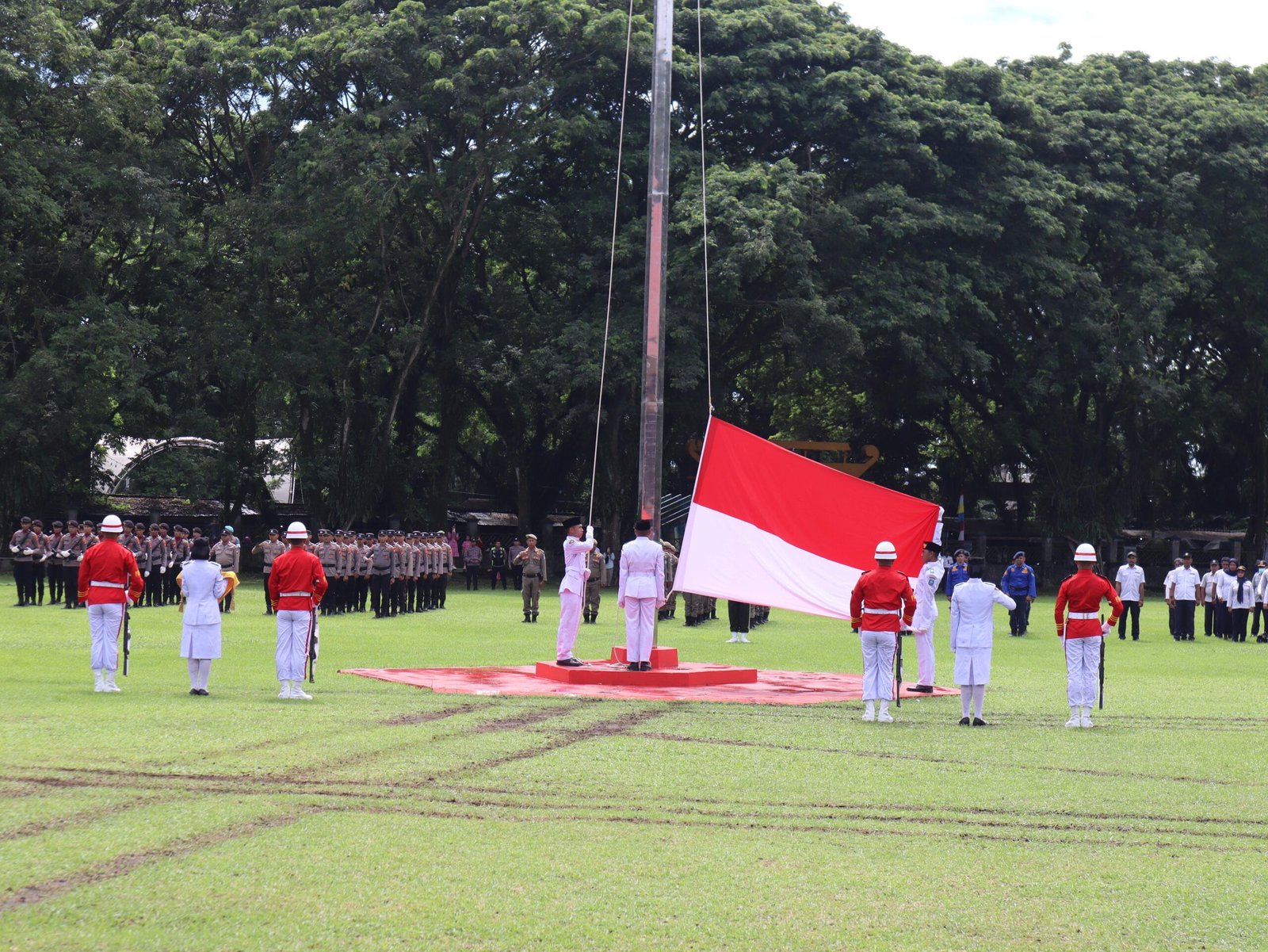 Jalannya upacara semakin khidmat dengan Pengibaran Sang Merah Putih oleh Pasukan Pengibar Bendera Pusaka (Paskibraka) yang merupakan siswa-siswi terbaik dari SMA sederajat Se-Halmahera Utara.
