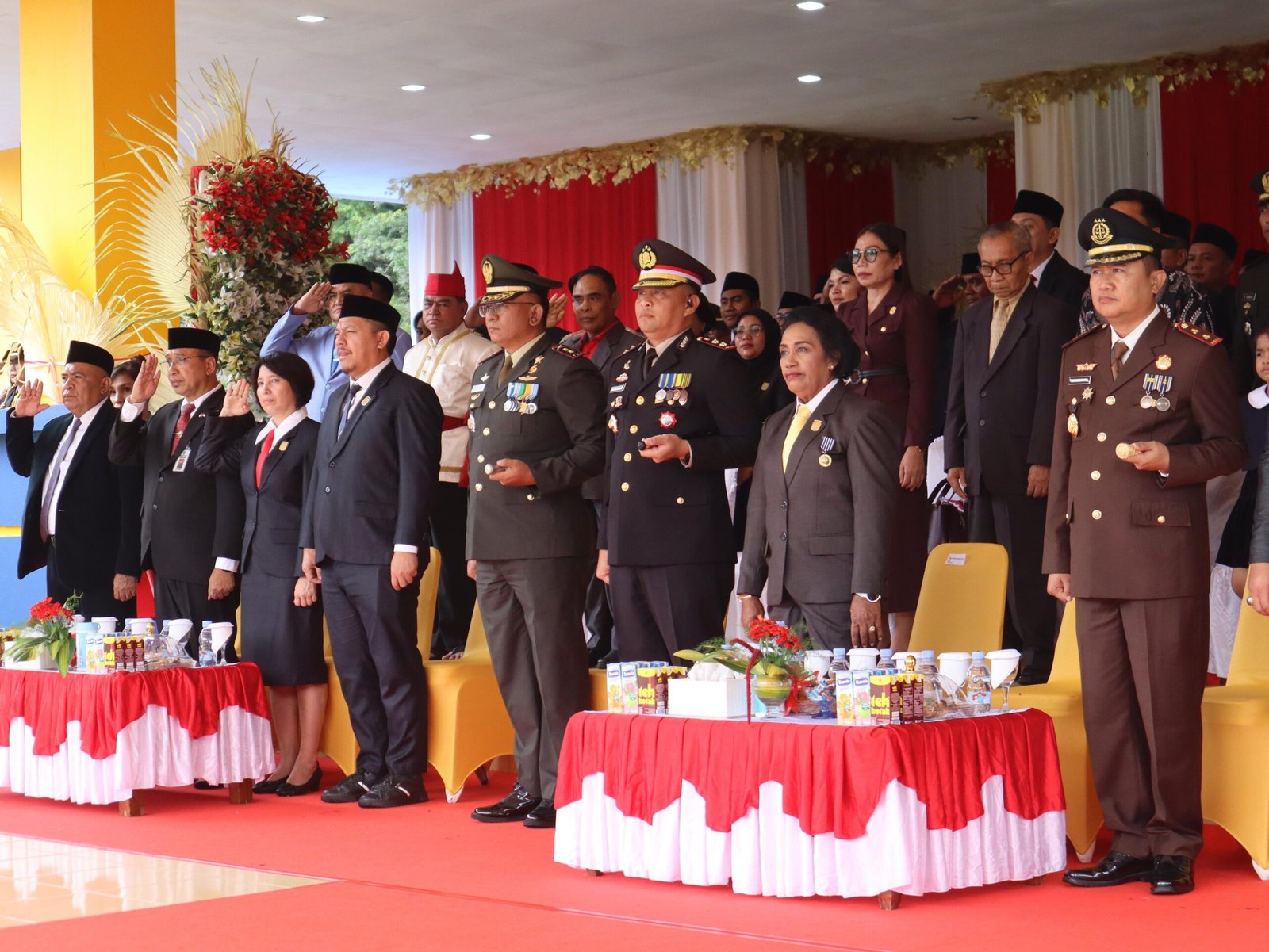 Upacara tersebut dipimpin langsung Bupati Halut Dr Piet Hein Babua M.Si, Ketua DPRD Halut Cristina Lesnussa, Dandim 1508/Tobelo Letkol inf Alex Donald ML Maritua SE., MM, Kapolres Halmahera Utara AKBP Erlichson Pasaribu, SH, SIK, Kepala Kejaksaan Negeri Halut Bambang Sunoto SH,MH Bersama Ibu, Ketua Pengadilan Negeri Tobelo R.muhamad Syakrani.SH. Bersama Ibu, Sekda Halut Drs EJ Papilaya MTP Bersama, Wakil I DPRD Halut Inggrid Paparang, Wakil II DPRD Halut Abdila Bailusi, Para Pimpinan Vertikal Kabupaten Halmahera Utara, Para Asisten Setda Halut Staf Ahli Bupati dan Pimpinan OPD, Danpom Tobelo Lettu CPM Roy Tambun, Danpos AL Tobelo Letda POMAL Miftahudin, Para Mantan Bupati Halmahera Utara, Para Camat dan Kepala Desa SE Kabupaten Halmahera Utara, Para Pimpinan Bank Se Kabupaten Halmahera Utara, Para Pimpinan Perusahaan Se Kabupaten Halmahera Utara, Para Tidak Pimpinan GMIH, Para Veteran kabupaten Halmahera Utara, Para Pimpinan OKP Kabupaten Halmahera Utara, Para PJU Polres Halut, Para Perwira Kodim 1508/Tobelo, Tokoh Agama, Tokoh Masyarakat, Tokoh Pemuda , beserta undangan lainnya.