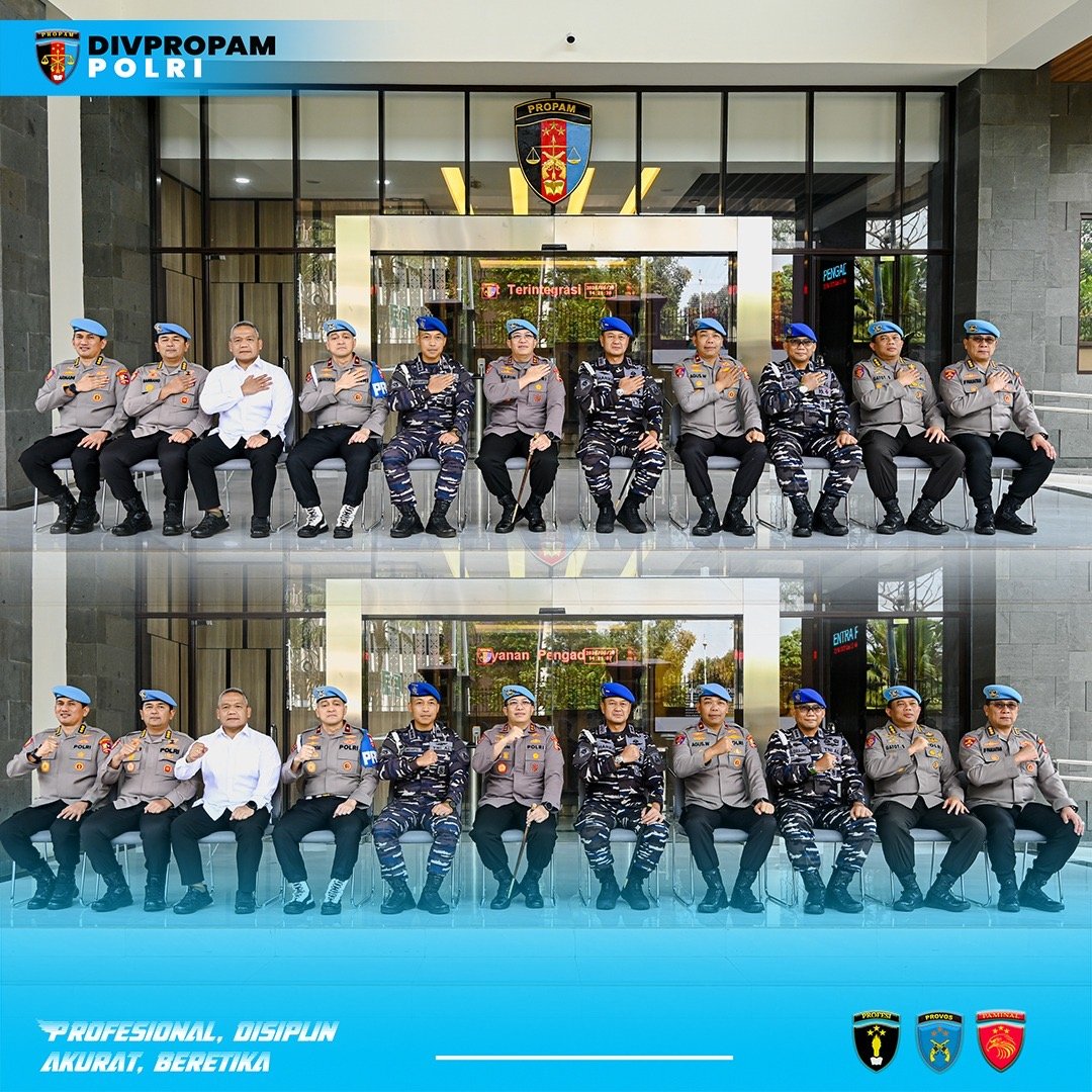 Jakarta – Divisi Profesi dan Pengamanan (Divpropam) Polri menerima kunjungan silaturahmi dari Komandan Pusat Polisi Militer Angkatan Laut (Danpuspomal) Mayjen TNI (Mar) Harry Indarto, S.E., M.M. beserta rombongan, dalam suasana penuh keakraban dan kebersamaan.