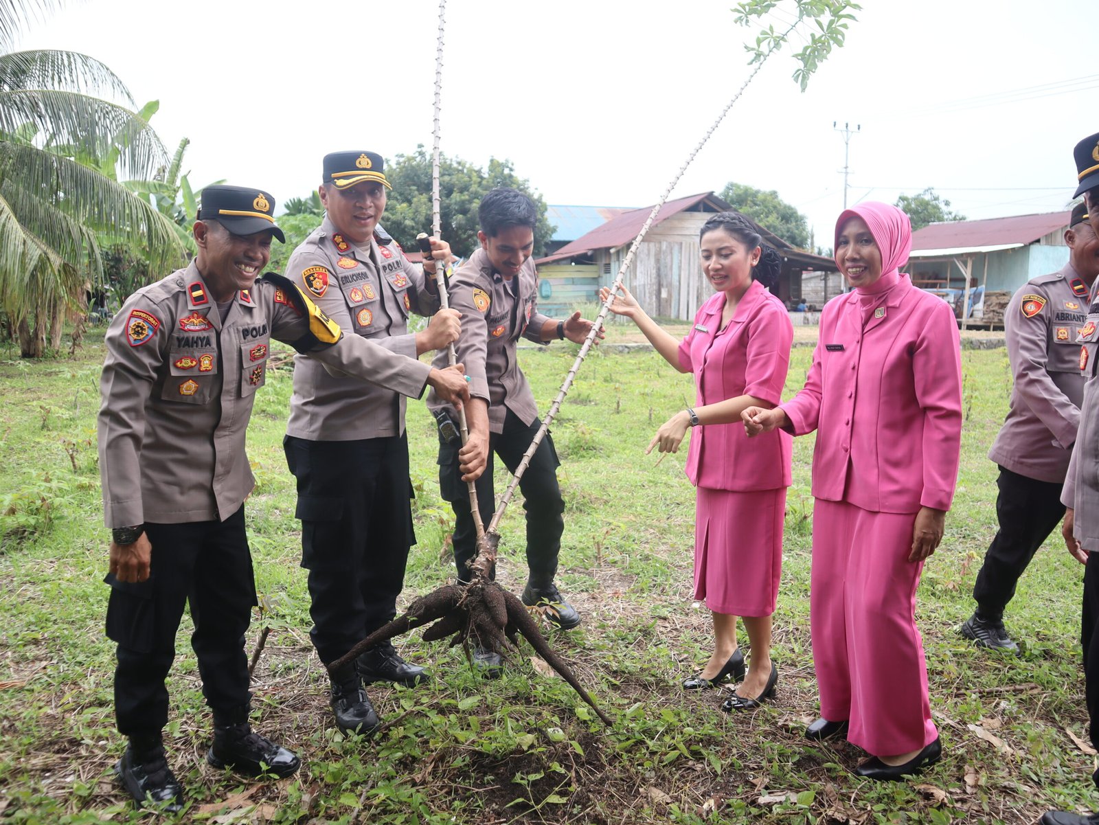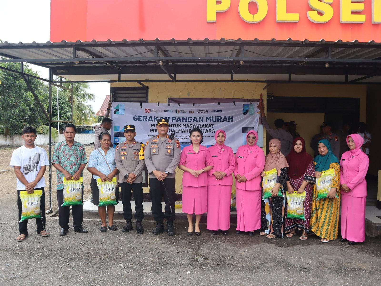 Kapolres Halmahera Utara AKBP Erlichson Pasaribu, S H.,S.I.K bersama Ketua Bhayangkari Cabang Halmahera Utara Ny. Friska Erlichson di dampingi para PJU melaksanakan giat Gerakan Pangan Murah, dengan melakukan pembagian Beras sebanyak 100 Sak berukuran 5 Kg kepada warga masyarakat di Lanjutkan melaksanakan Survei Lahan Pekarangan Pangan Lestari (P2L) Polsek Kao.