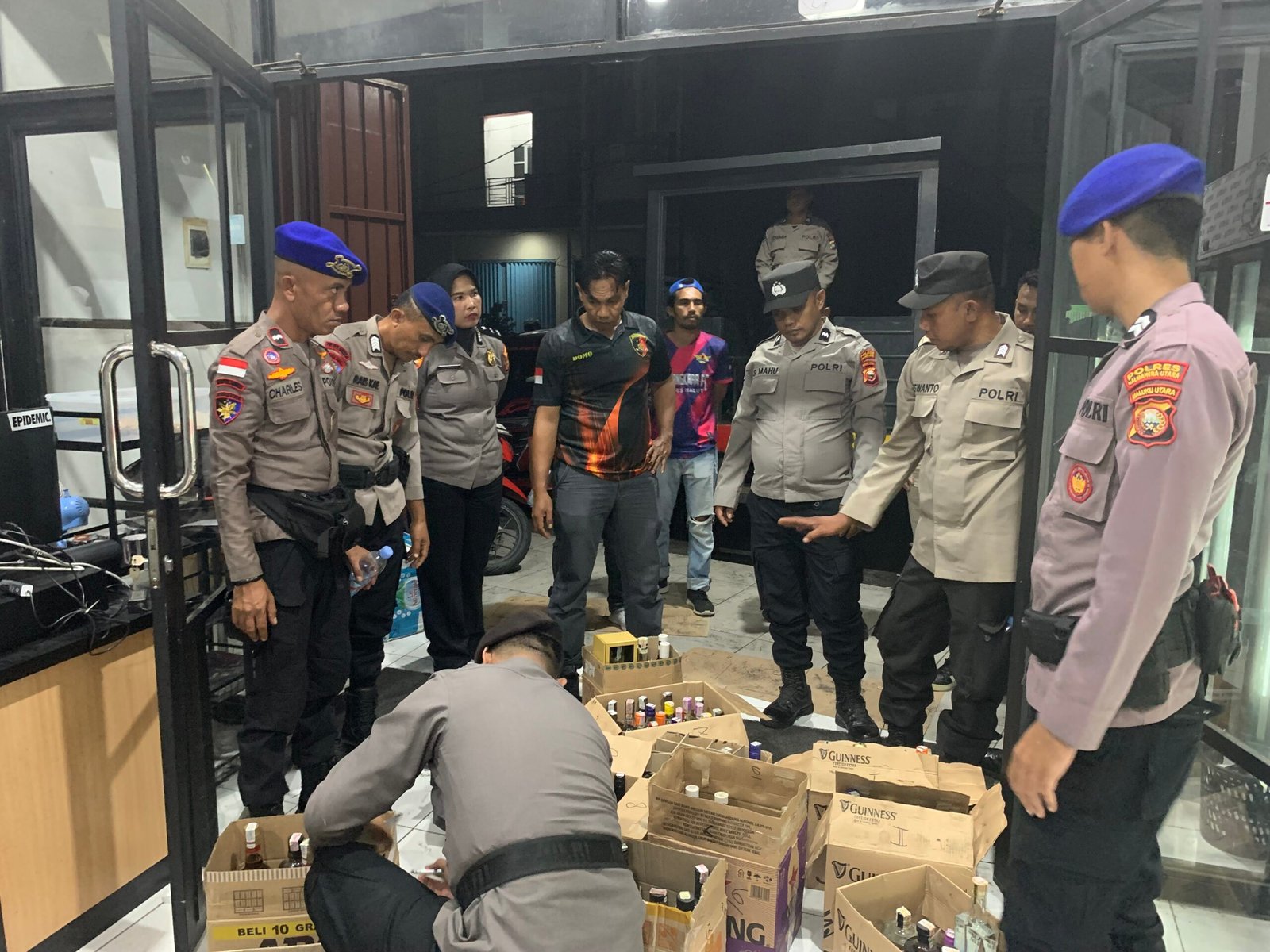 HUMAS POLRES HALUT –Personel Polres Halmahera Utara yang tergabung dalam Sprin Ops Pekat Kie Raha I melakukan kegiatan operasi penyakit masyarakat (pekat) dengan sasaran minuman keras di wilayah Kota Tobelo Kabupaten Halmahera Utara Maluku Utara, Jumat ( 30/1/26 )