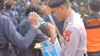 Polisi Bagikan Air Mineral kepada Massa Demo di Senayan