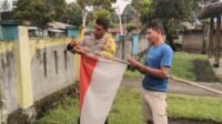 Sambut HUT RI ke-80, Bhabinkamtibmas Ajak Warga Pasang Bendera Merah Putih