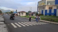 Berikan Rasa Aman Saat ke Sekolah, Sat Lantas Polres Halmahera Utara Menyebrangkan Jalan Dan Melaksanakan Pengaturan Lalu Lintas