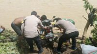 Polisi Bantu Warga Seberangi Sungai Setelah Jembatan Bobisingo Ambruk Diterjang Banjir