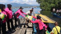 Polwan Polres Halut Dan Bhayangkari Bantu Salurkan Beras Pangan Murah Di Pulau Kumo