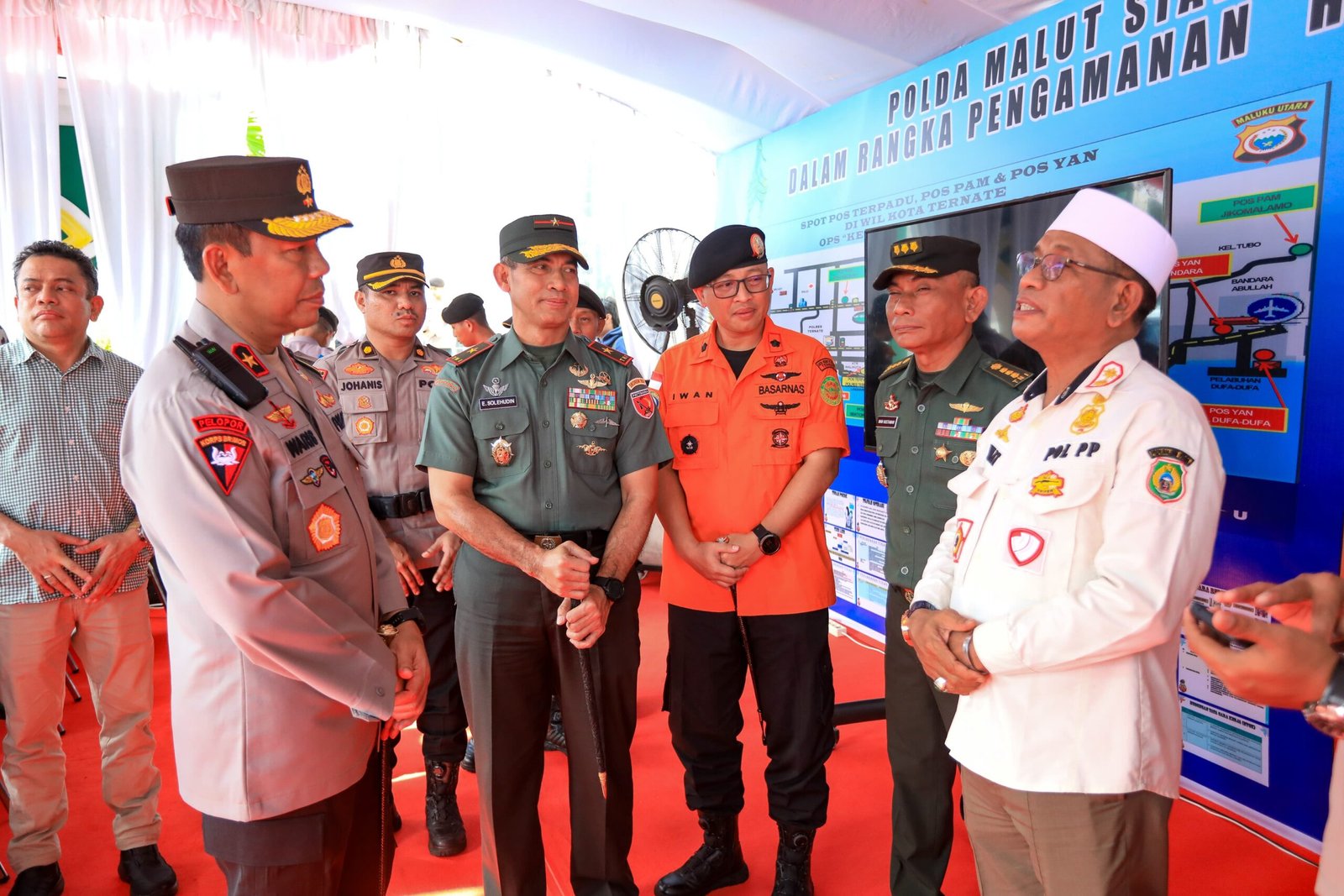 Selain Kapolda, peninjauan ini juga dihadiri oleh Danrem 152/Babullah Brigjen TNI Enoh Solehudin, S.E., Pejabat Utama Polda, Kapolres Ternate, Kepala Satpol PP Provinsi Malut, serta Kepala Basarnas Kota Ternate.