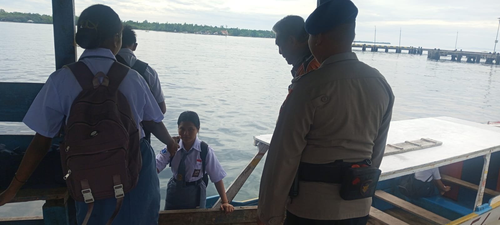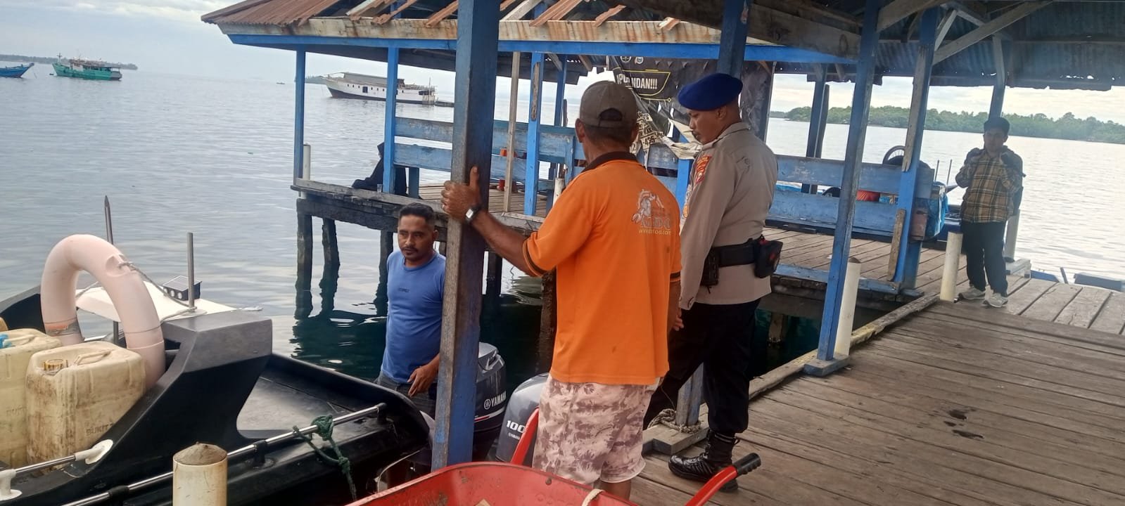 Saat kegiatan sambang Aipda Lucas Biso menghimbau kepada masyarakat agar Selalu mengutamakan keselamatan saat melakukan aktivitas di area pelabuhan dengan memperhatikan cuaca laut, dan alat keselamatan.