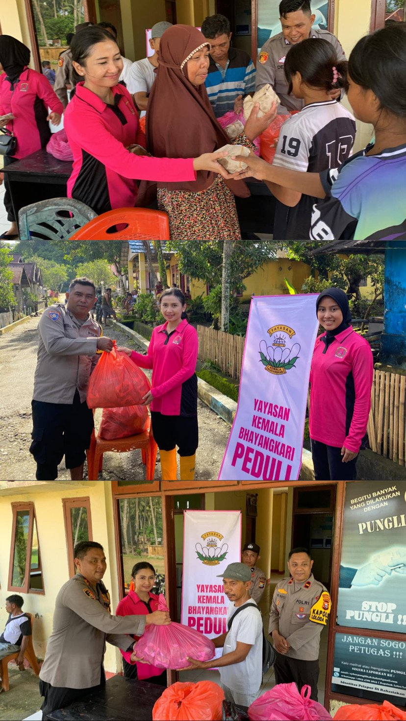 Dengan Akses Jalan Yg Putus Bhayangkari Melalui Akses Laut Yang Cukup Menantang Ombak, Dengan Komitmen Yang Kuat untuk Membantu Masyarakat yg Terdampak Menuju Ke Loloda Utara Adalah Aksi sosial tersebut menyasar Desa Asmiro Dan Desa Ngajam,Warimoi , Dan Beberapa Desa Yg Tidak Bisa Di Sandar Oleh perahu fiber Karna Ombak yg cukup Tinggi, kawasan yang menjadi salah satu titik akibat banjir Dan Tanah Longsor yang melanda beberapa hari terakhir. Kehadiran rombongan Bhayangkari Cabang Halut disambut hangat warga, yang sejak banjir melanda Tanah Longsor menghadapi keterbatasan akses logistik dan harus berjuang di tengah genangan lumpur.