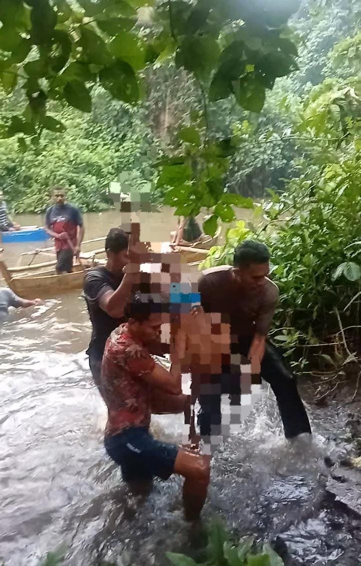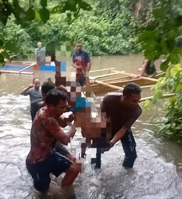 Pada Pukul 18.10 wit, Personil Polsek Tobelo Selatan tiba di lokasi dan bersama warga melakukan pencarian baik di kali maupun menggunakan perahu karena dihawatirkan korban hanyut terbawa arus sampai pada pantai Pada Pukul 18.25 wit, Korban ditemukan sudah dalam keadaan Meninggal Dunia oleh Warga Paca Sdr. Daniel Kihi – Kihi yang turun menyelam di kali dengan jarak 10 meter dari arah Korban melompat.