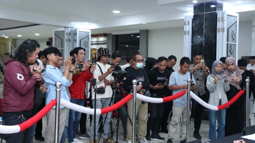 Konferensi Pers dipimpin oleh Ditreskrimum Polda Kalbar, Kombes Pol Raswin Bachtiar Sirait, S.H, S.I.K. M.Si didampingi oleh Kasubbid Penmas Bidhumas Polda Kalbar, AKBP Prinanto, dan Kasubdit Kamneg, Kompol Lely Suheri, S.H, M.M serta dihadiri oleh Para Awak Media baik Lokal maupun Media Nasional. (Rabu, 17/9/2025)