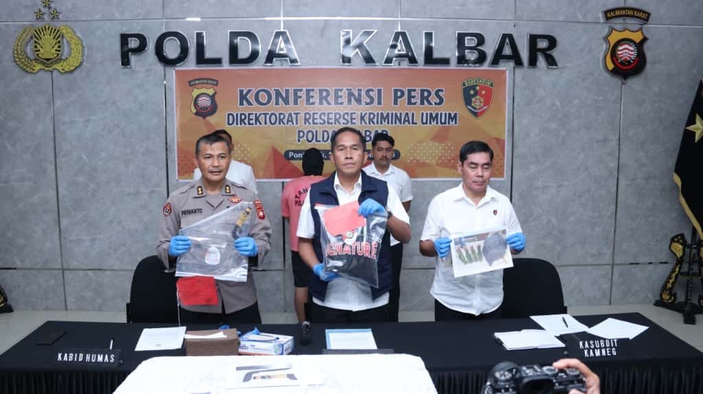 Konferensi Pers dipimpin oleh Ditreskrimum Polda Kalbar, Kombes Pol Raswin Bachtiar Sirait, S.H, S.I.K. M.Si didampingi oleh Kasubbid Penmas Bidhumas Polda Kalbar, AKBP Prinanto, dan Kasubdit Kamneg, Kompol Lely Suheri, S.H, M.M serta dihadiri oleh Para Awak Media baik Lokal maupun Media Nasional. (Rabu, 17/9/2025)