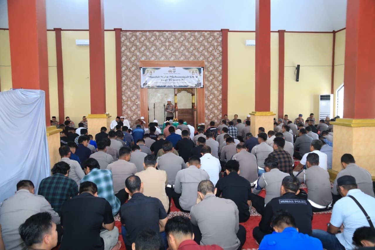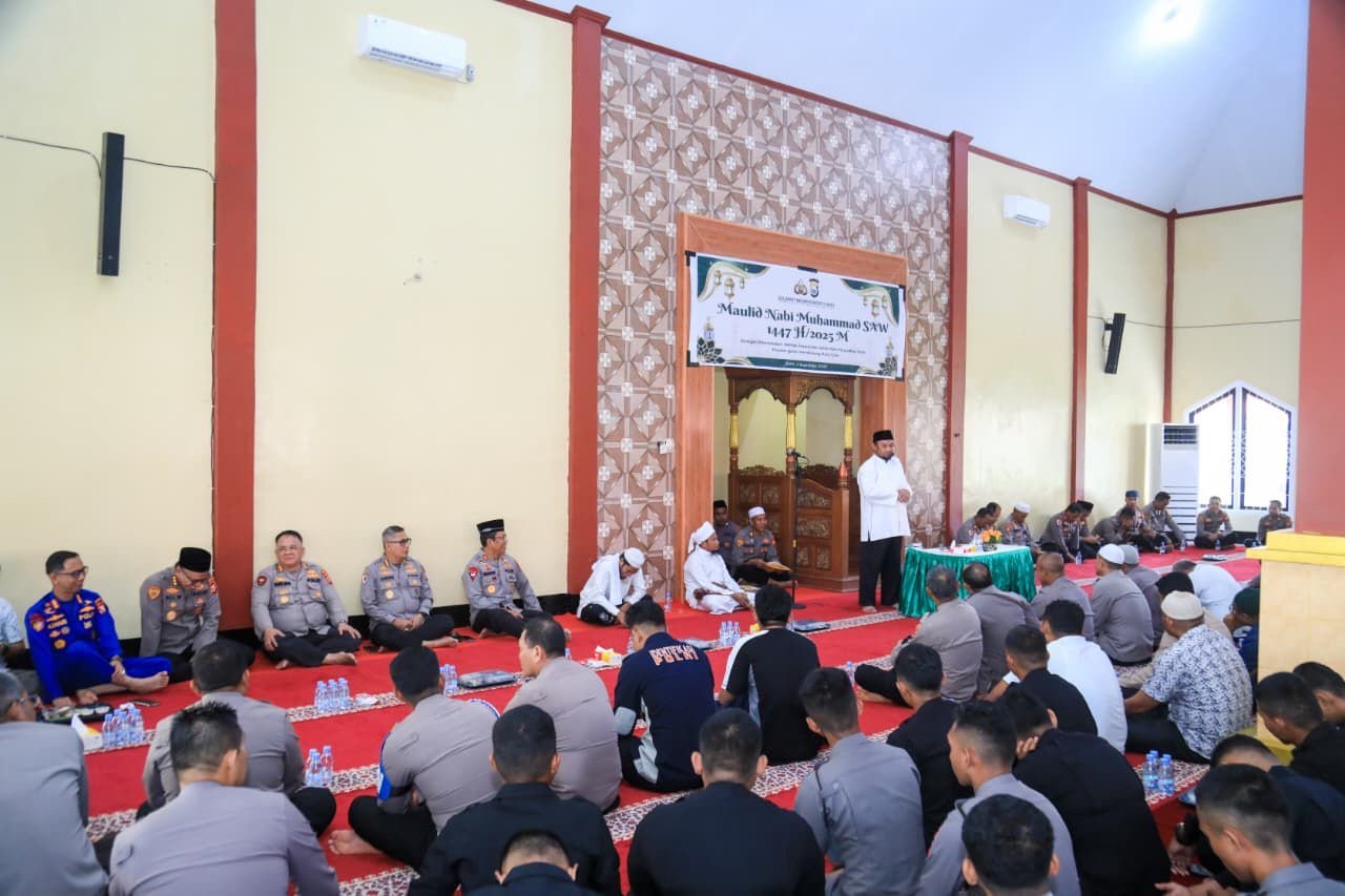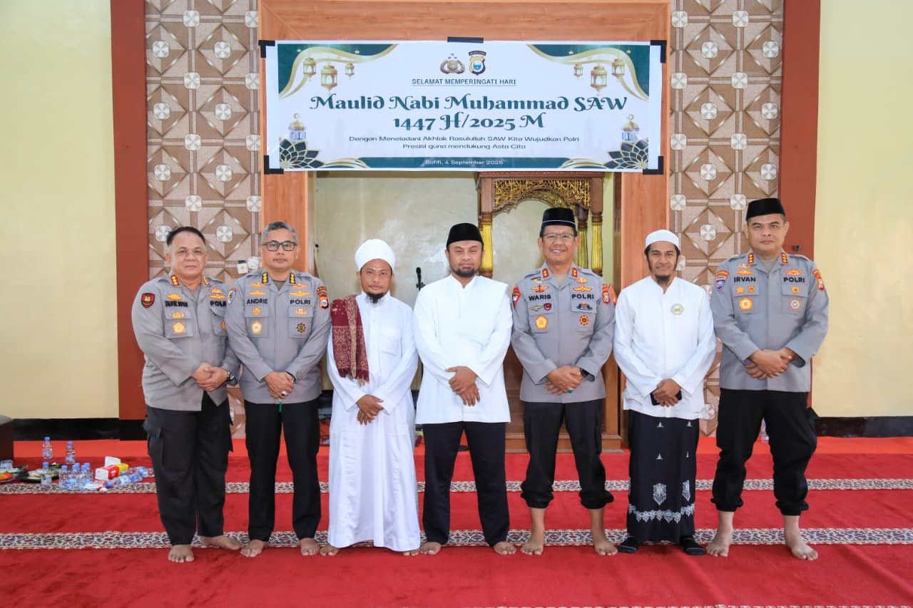 Kepolisian Daerah Maluku Utara menyelenggarakan peringatan Maulid Nabi Muhammad SAW 1447 H / 2025 M di Masjid Al-Muhajirin Polda Maluku Utara, Sofifi, pada Kamis (4/9).
