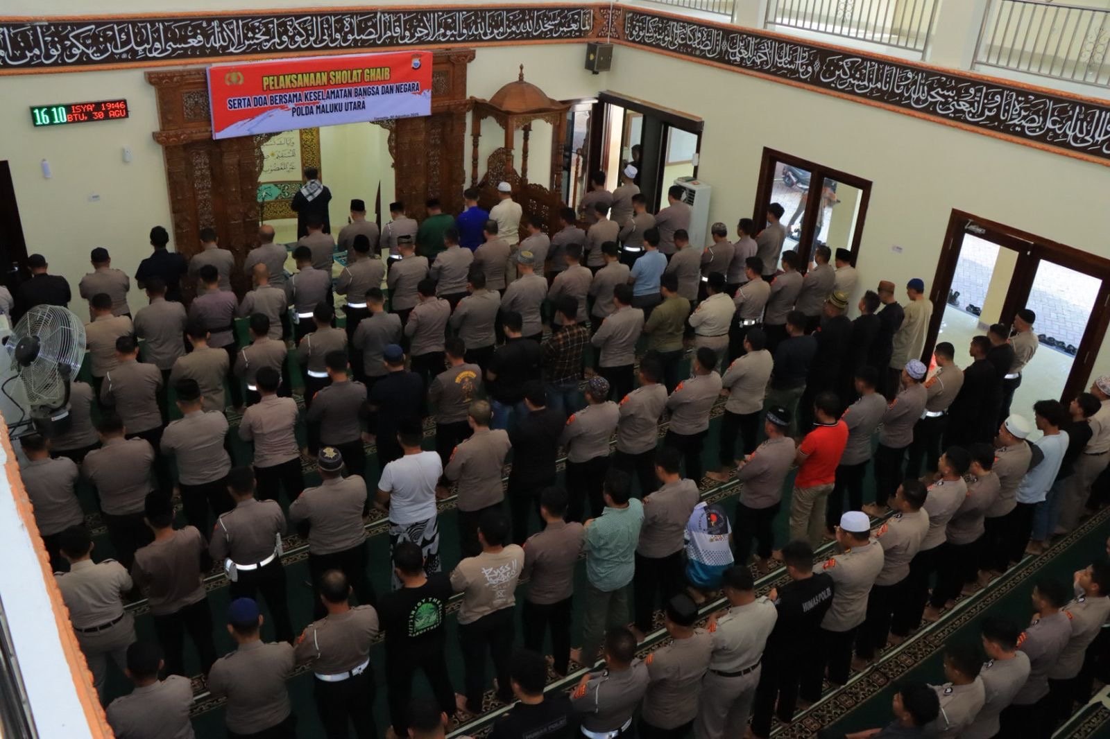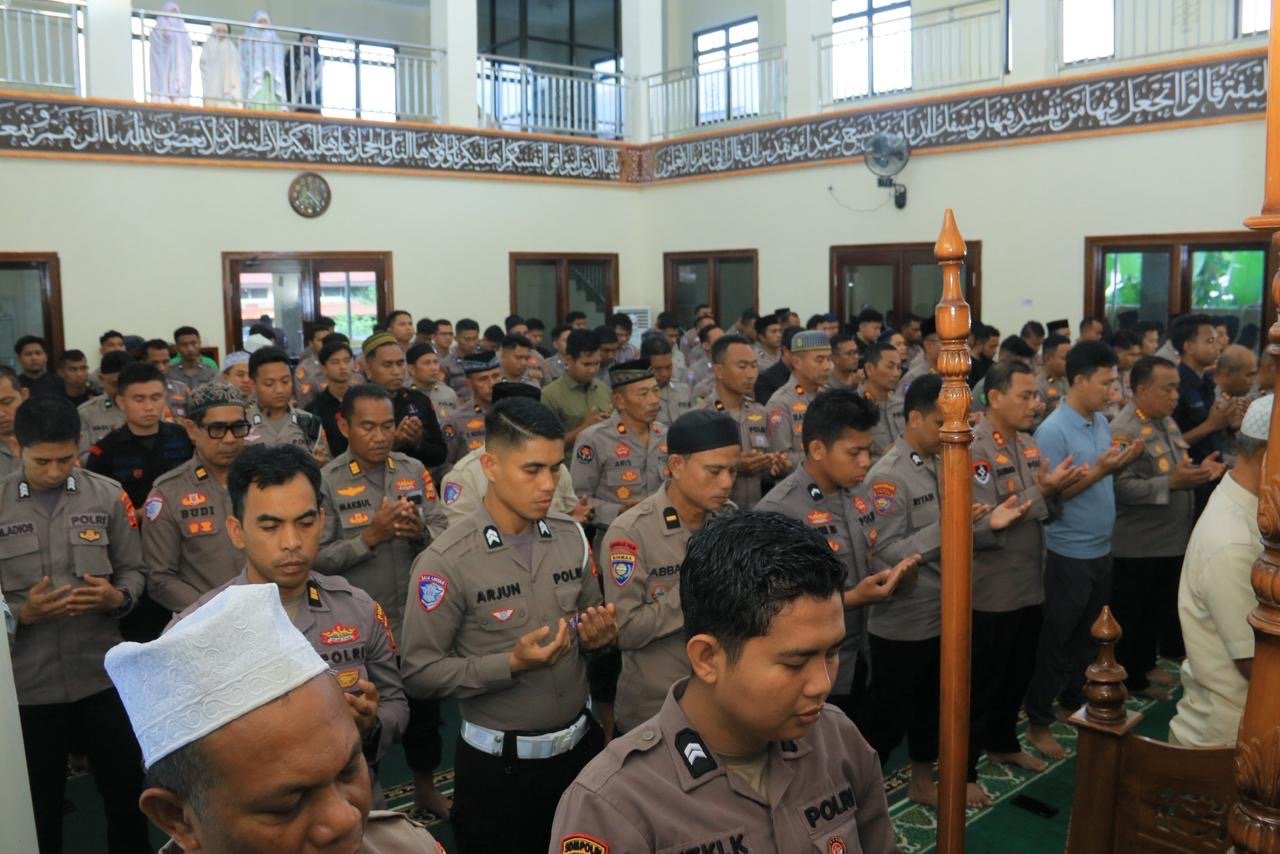 Sholat Ghaib dilaksanakan Masjid Nurul Huda Polda Maluku Utara diikuti oleh Pejabat Utama Polda Malut, komunitas Ojol, Mahasiswa, anak yatim dan seluruh personel Polda Malut.