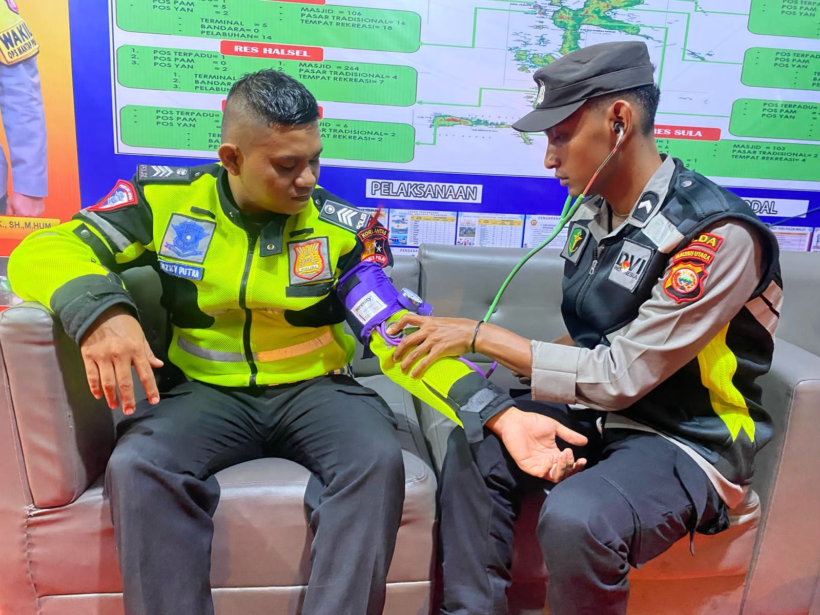 HUMAS POLDA MALUT – Dalam rangka menjaga kesehatan personel yang tengah bertugas mengamankan kelancaran arus mudik dan perayaan Idulfitri 1446 Hijriah/2025 Masehi, Subsatgas Dokkes Operasi Ketupat Kie Raha 2025 Polda Maluku Utara menggelar pemeriksaan kesehatan pada Jumat (28/3/2025).