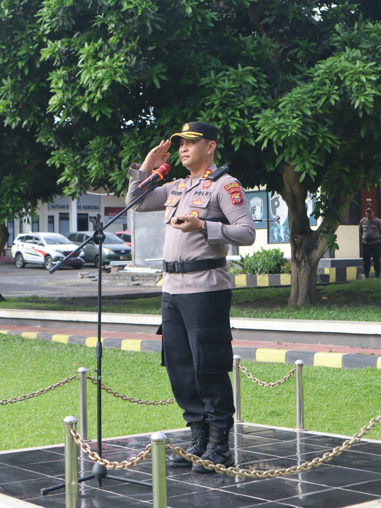 AKBP Erlickson Pasaribu S.H, S.I.K saat membacakan Amanat Kapolda Maluku Utara