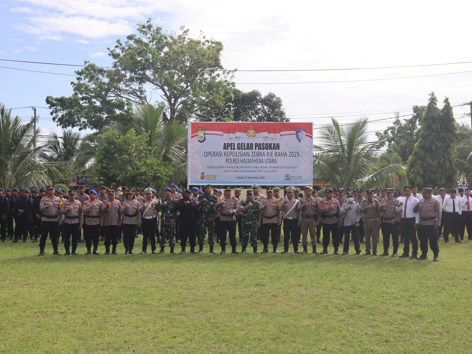 HUMAS POLRES HALUT – Kepolisian Resor Halmahera Utara menggelar Apel Gelar Pasukan Operasi Zebra Kie Raha 2025 bertempat di Lapangan Apel Polres Halmahera Utara, Maluku Utara, Senin (17/11/ 2025)
