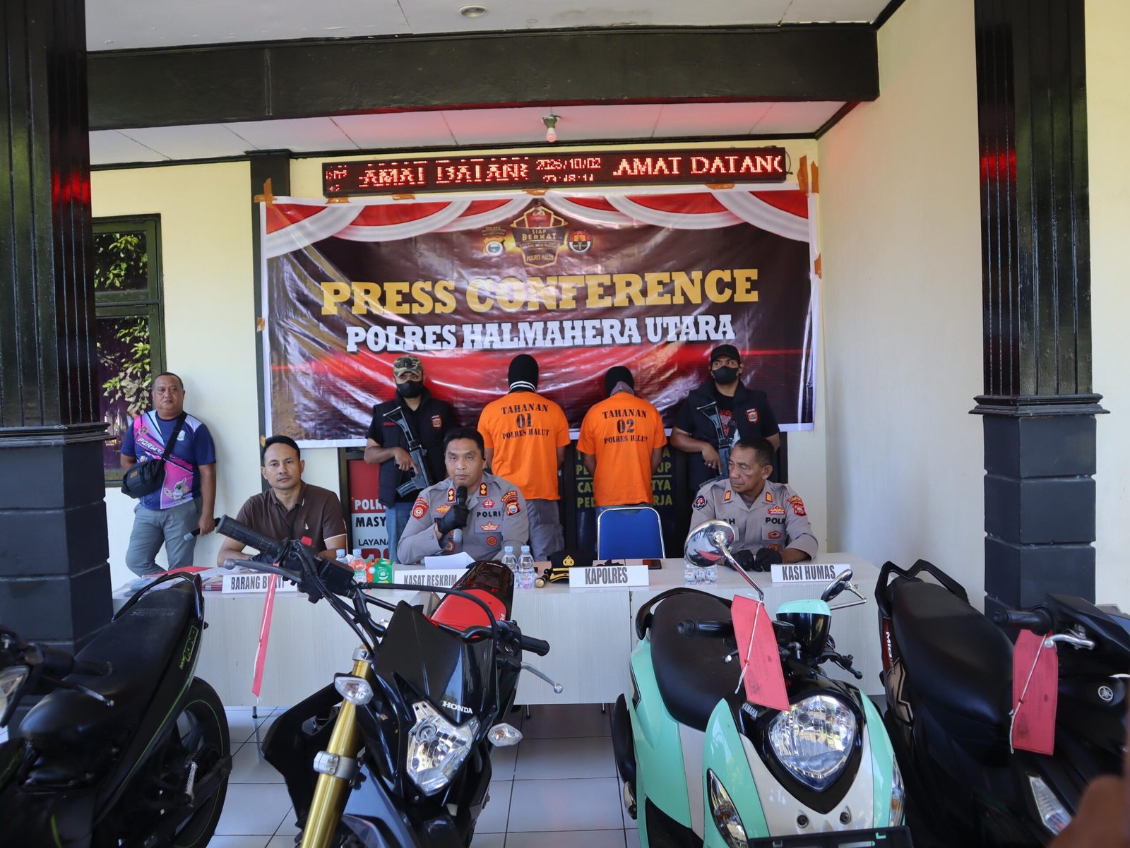 HUMAS POLRES HALUT – Polres Halmahera Utara menggelar konferensi pers di depan Mapolres Halmahera Utara Jumat (3/10/25),