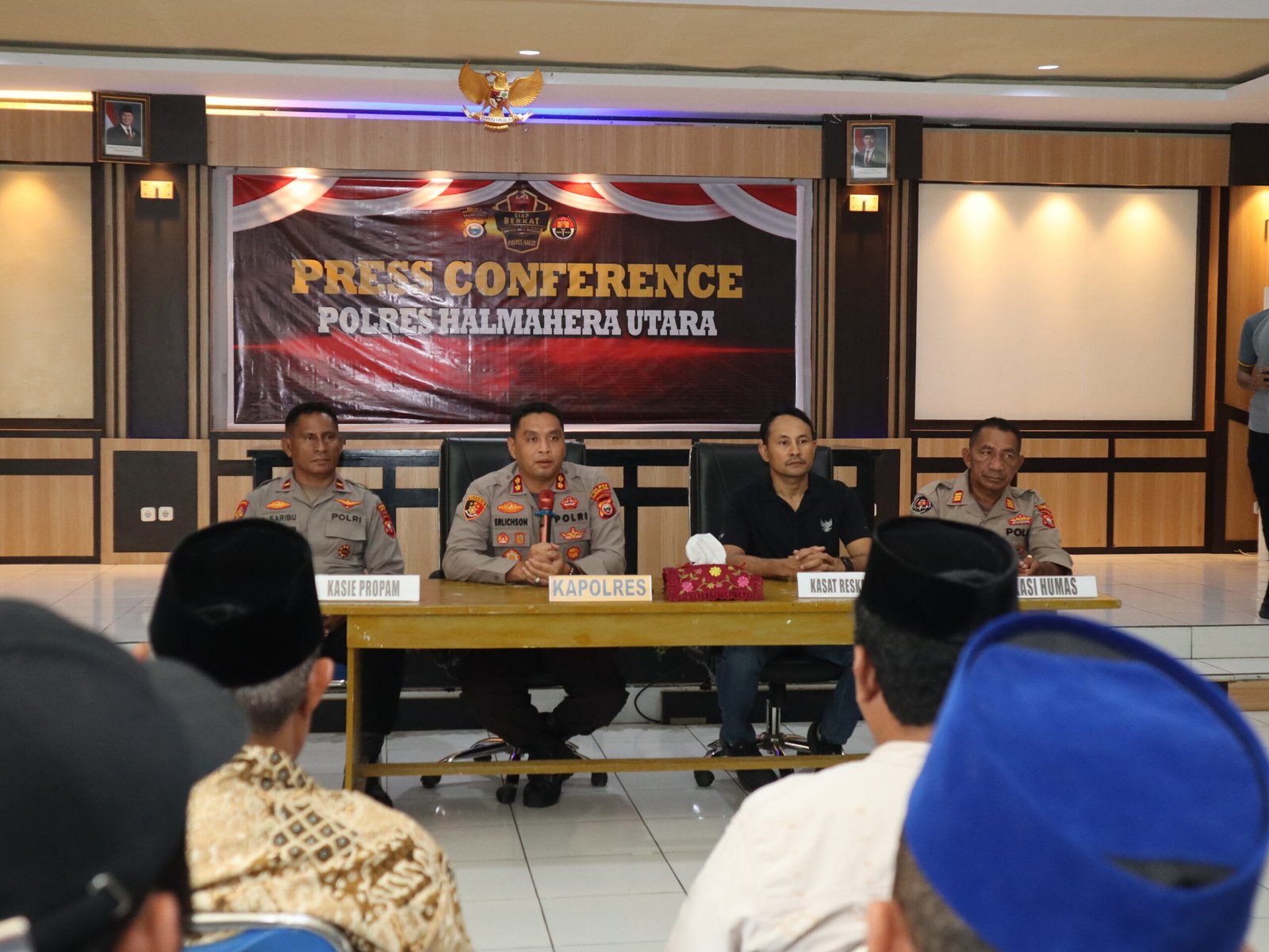 Konferensi Pers yang digelar di Ruang Amarta Polres Halmahera Utara, dihadiri oleh sejumlah organisasi diantaranya, Aliansi Umat Muslim Halut, Majelis Ulama Indonesia (MUI) Nahdatul Ulama (NU), Himpunan Mahasiswa Indonesi (HMI), Alkhairat, Gerakan Mahasiswa Kristen Indonesia (GMKI), Gerakan Angkatan Muda Kristen Indonesia (GAMKI) dan Aliansi OKP Lintas Agama