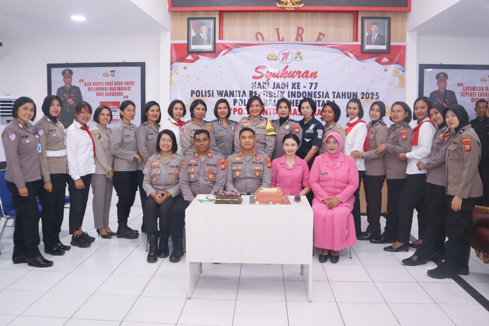 Humas polres halut – Kepolisian Resort Halmahera Utara mengadakan acara syukuran Hari Ulang Tahun Polwan ke-77, Dengan Tema “POLRI UNTUK MASYARAKATA” bertempat di ruang Vikon Polres Halmahera Utara, Desa Gamsungi, Kecamatan Tobelo, Kamis (11/9/2025) pukul 10.00 WIB. Acara berlangsung penuh keakraban, sarat makna dengan menghadirkan pejabat utama dan seluruh jajaran Polres Halut.