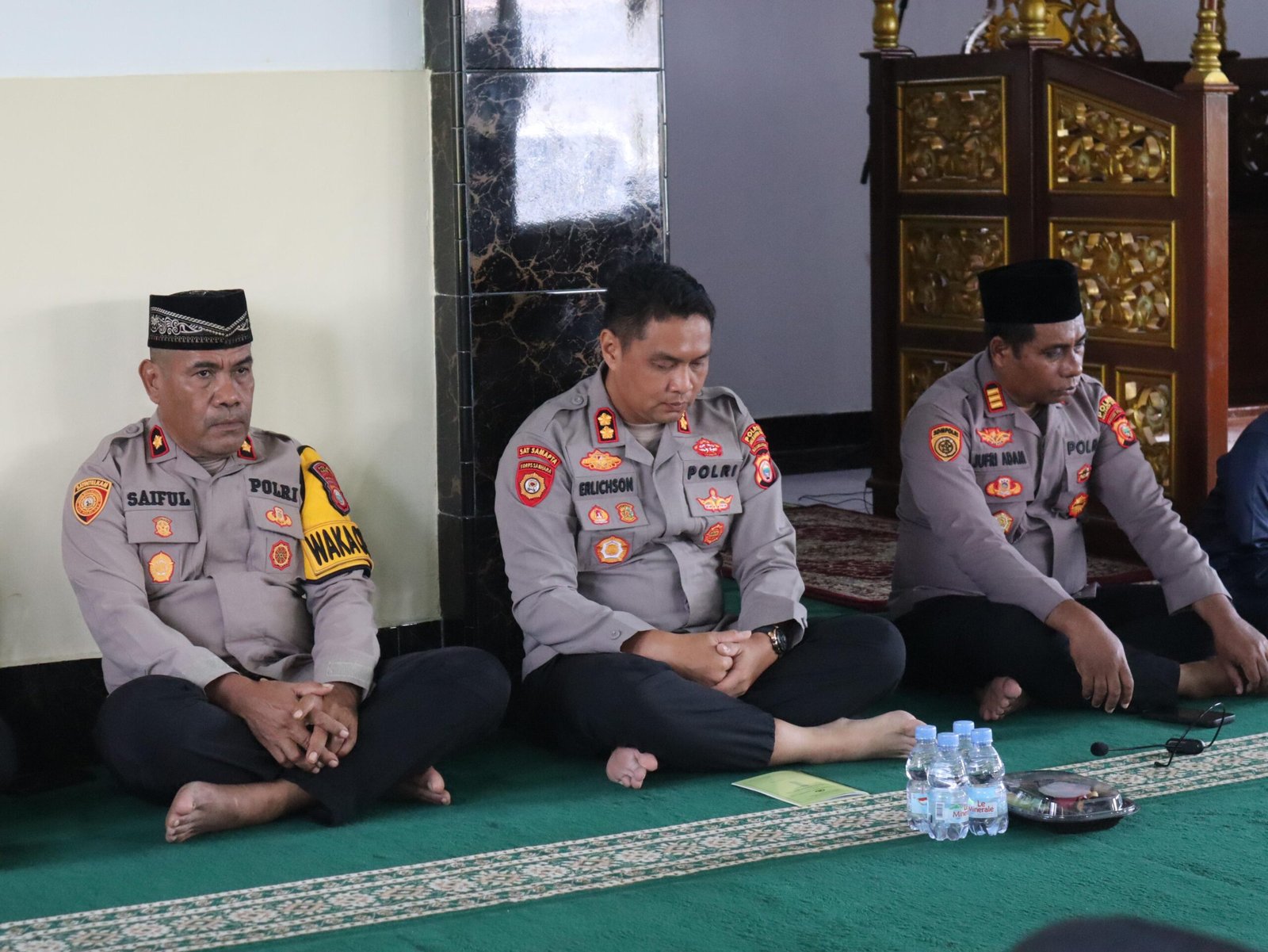 Meneguhkan Karakter Religius Prajurit kegiatan Kegiatan ini turut dihadiri Wakapolres Halmahera Utara Saiful Egal, S.A.P, Wakil ketua Cabang Bhayangkari Ny. Ela Saiful, Ustad Muhammad Yahya Mandatillah, Para PJU Polres Halmahera Utara, Personil Polres Halmahera Utara, Bhayangkari Cabang Halmahera Utara. Nuansa kebersamaan begitu terasa saat seluruh jamaah menyimak tausyiah dengan penuh perhatian.