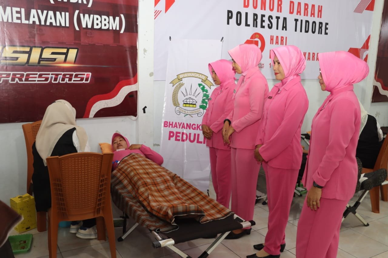 Dalam rangka menyambut Hari Ulang Tahun (HUT) Bhayangkara ke-79, Polresta Tidore menggelar kegiatan Bakti Kesehatan berupa donor darah yang berlangsung di Ruang Aula Tien Wahab Polresta Tidore, Rabu (18/06/2025). Kegiatan ini menjadi wujud nyata kepedulian Polri terhadap kesehatan masyarakat.