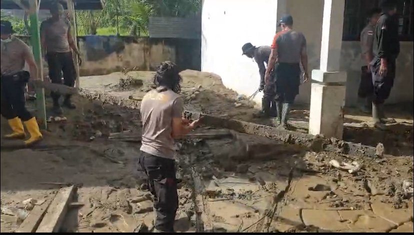 Sekolah tersebut merupakan salah satu fasilitas pendidikan yang terdampak banjir akibat tingginya curah hujan dalam beberapa waktu terakhir. Pasca surutnya air, sisa lumpur dan material banjir masih mengendap di sejumlah titik lingkungan sekolah sehingga membutuhkan penanganan cepat agar aktivitas belajar mengajar dapat kembali berjalan normal.